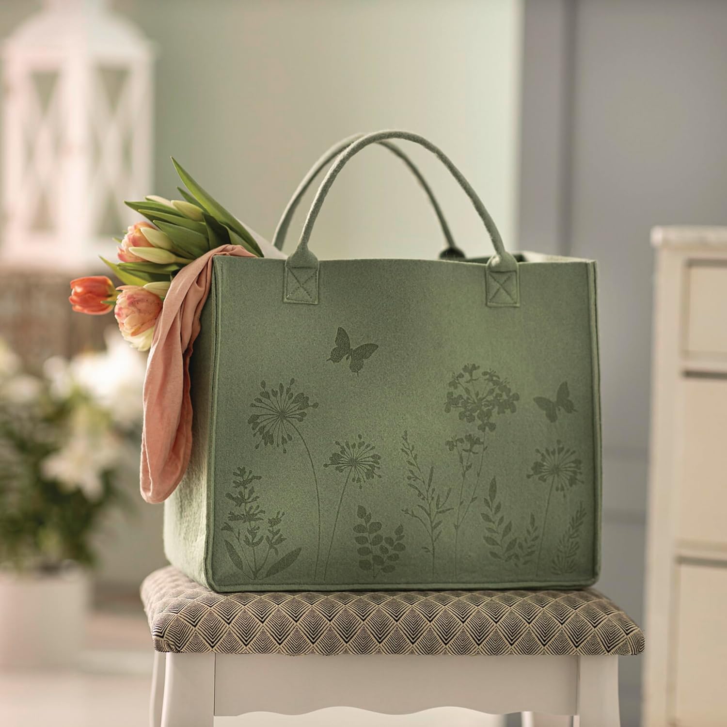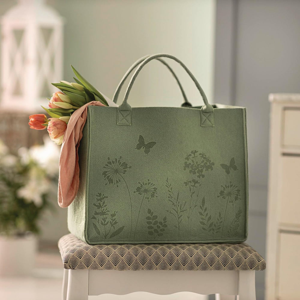 - Filz aus 100% recyceltem PET, grün, geprägtes Motiv, stabile Henkel