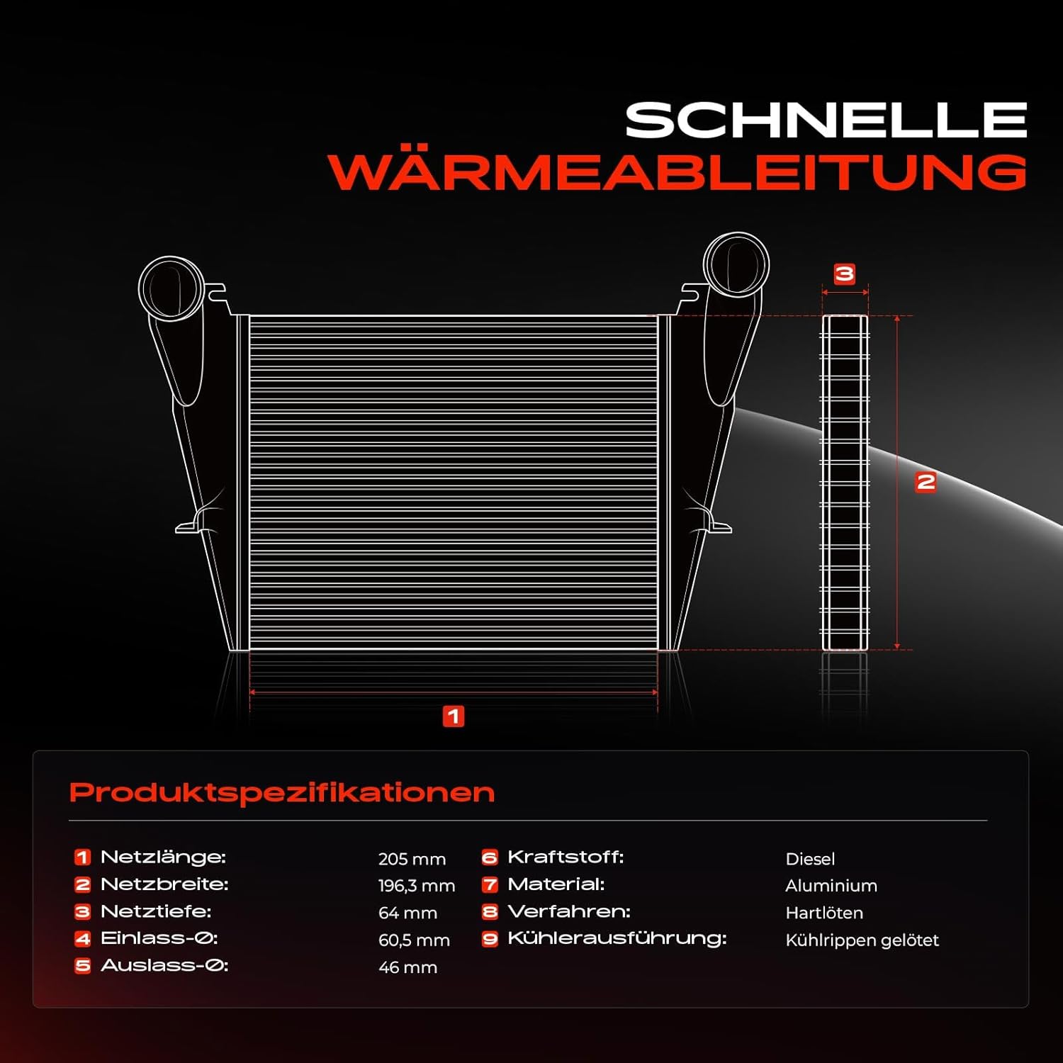 - 【Technische Info.】Kraftstoff: Diesel; Material: Aluminium/Kunststoff; Netzlänge [mm]: ca. 200; Netzbreite [mm]: ca. 205; Netztiefe [mm]: ca. 64