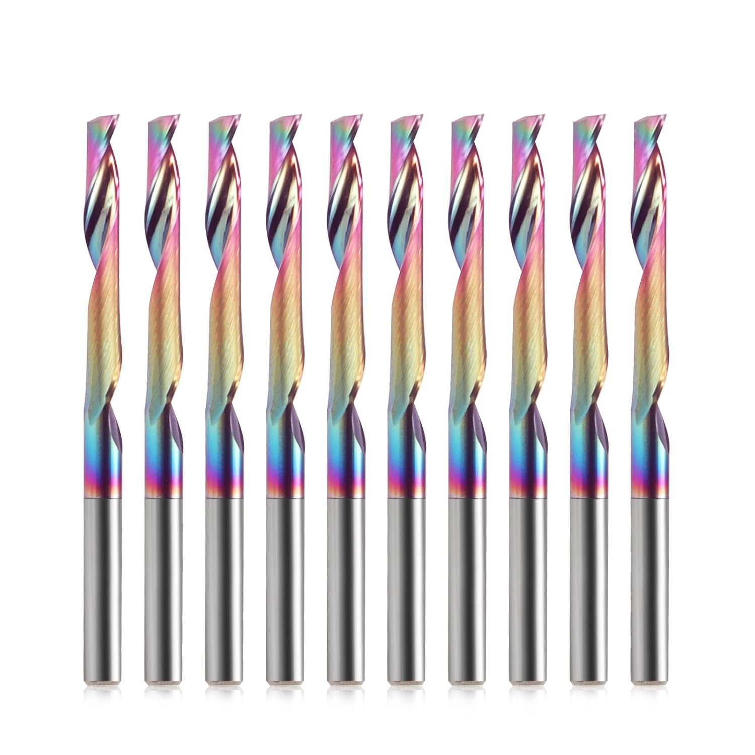 - Spezielle Single Nut CNC Fräser Bits Abmessungen-Schaft Durchmesser: 3.175mm; Schneiddurchmesser: 3.175mm; Schnittlänge: 22mm; Gesamtlänge: 45mm; Material: Wolframstahl. Bitte wählen Sie eine Schnittlänge, die das Brett um 2-5mm übersteigt, oder es