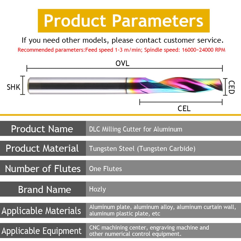 - DLC (Diamant-ähnlicher Kohlenstoff) Beschichtung 3.175mm Schaft CNC-Endfräser für Aluminium hat die Vorteile der ultra-hohen Härte, des niedrigen Reibungskoeffizienten, der hohen Temperaturbeständigkeit, der guten elektrischen Isolierung, der