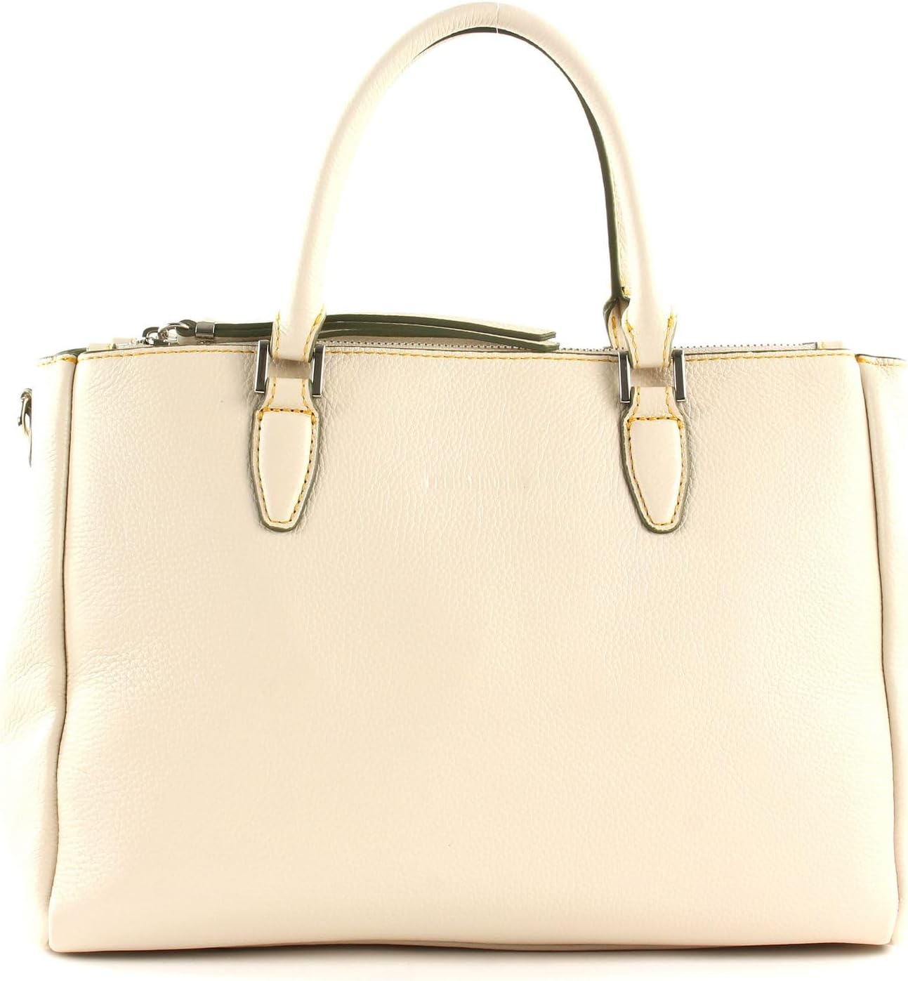 PRODUKTBESCHREIBUNGEN FREDsBRUDER Handtasche aus genarbtem Rindsleder Daten Handtasche: o Masse: Breite ca. 30,5 cm, Höhe ca. 21,5 cm, Tiefe ca. 12 cm o Gewicht: ca. 815 g o Farbe: Beige (Beige) o 2 Henkel: ca. 35 cm o 1 Schulterriemen abnehmbar, stufenlos verstellbar: ca. 78 cm - 143 cm o Material: Aussen 100% Rindsleder, innen 100% Polyester o Lieferumfang: FREDsBRUDER Handtasche mit Etikett, Schulterriemen, Staubbeutel Ausstattung Handtasche: o Handtasche wird mit Magnetverschluss geschlossen o Das Hauptfach ist durch 1 Zipperfach in 2 Fächer unterteilt o Im vorderen Hauptfach 2 Einschubfächer o Im hinteren Hauptfach 1 Zipperfach o Auf der Rückseite 1 Zipperfach o Mit verstärktem Boden und Schutzfüsschen ausgestattet o Das FREDsBRUDER Logo ist gut sichtbar eingearbeitet FREDsBRUDER Bella Rivoli - Eine Handtasche mit extra Schulterriemen Diese FREDsBRUDER Handtasche ist nicht nur aus hochwertigem Leder und sieht auf Anhieb noble aus, sondern Sie überzeugt auch praktisch. Für den Alltag ist die Tasche ideal, denn alle Essentials lassen sich strukturiert im Hauptfach verstauen. Das schlichte Design und die moderne Form beleben jeden Outfits und holen so aus jedem Styling das gewisse Etwas heraus. Schreiten Sie also zuversichtlich gemeinsam mit der FREDsBRUDER Bella Rivoli durch den Tag!
