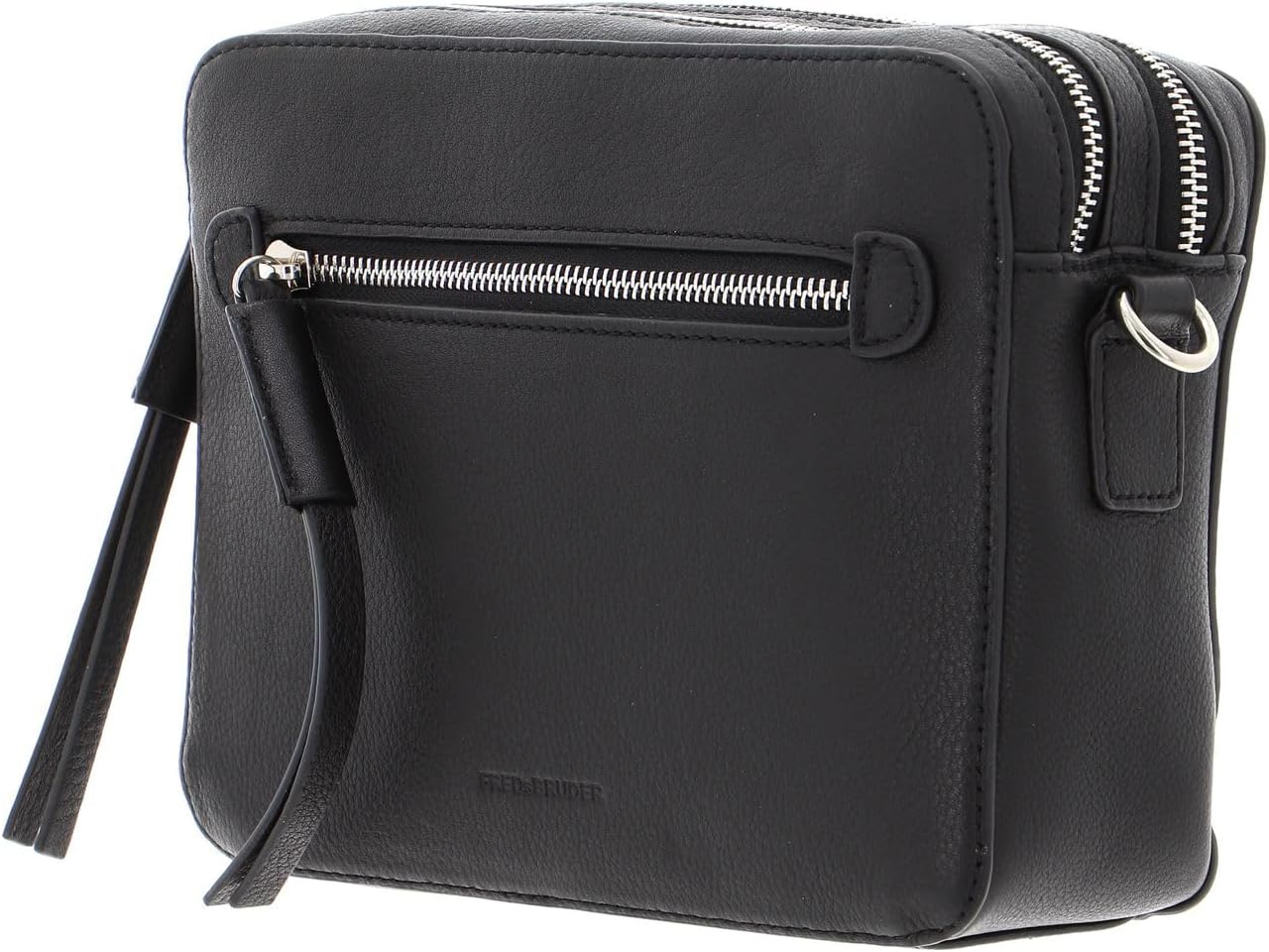 PRODUKTBESCHREIBUNGEN FREDsBRUDER Umhängetasche in schlichtem Design Daten Umhängetasche: o Masse: Breite ca. 22,5 cm, Höhe ca. 17 cm, Tiefe ca. 7 cm o Gewicht: ca. 778 g o Farbe: Black (Schwarz) o 1 Schulterriemen abnehmbar: ca. 76 cm o 1 Schulterriemen abnehmbar: ca. 65 cm o 1 Schulterriemen abnehmbar, stufenlos verstellbar: ca. 77 cm - 139 cm o Material: 100% Rindsleder o Lieferumfang: FREDsBRUDER Umhängetasche mit Etikett, 3 x Schulterriemen, Staubbeutel Ausstattung Umhängetasche: o Umhängetasche wird mit Zipper geschlossen o Umhängetasche besitzt 2 Hauptfächer mit Zipper o Im vorderen Hauptfach 2 Einschubfächer o Im hinteren Hauptfach 1 Zipperfach o Auf der Vorderseite 1 Zipperfach o Mit verstärktem Boden ausgestattet o Ist standfest o Besitzt geräumiges Hauptfach o Das FREDsBRUDER Logo ist gut sichtbar eingearbeitet FREDsBRUDER All In Catchy - Die Umhängetasche aus echtem Rindsleder Diese schicke FREDsBRUDER Umhängetasche begeistert aufgrund Ihres tollen Designs, Ihrer grossartigen Innenausstattung und Ihrer drei abnehmbaren Schulterriemen. Somit können Sie diese Tasche mit all Ihren Outfits kombinieren und Ihrem Styling anpassen. Die hochwertige Verarbeitung und das Material aus echtem Rindsleder versprechen Langlebigkeit! Staunen Sie mit uns über die tolle FREDsBRUDER All In Catchy!