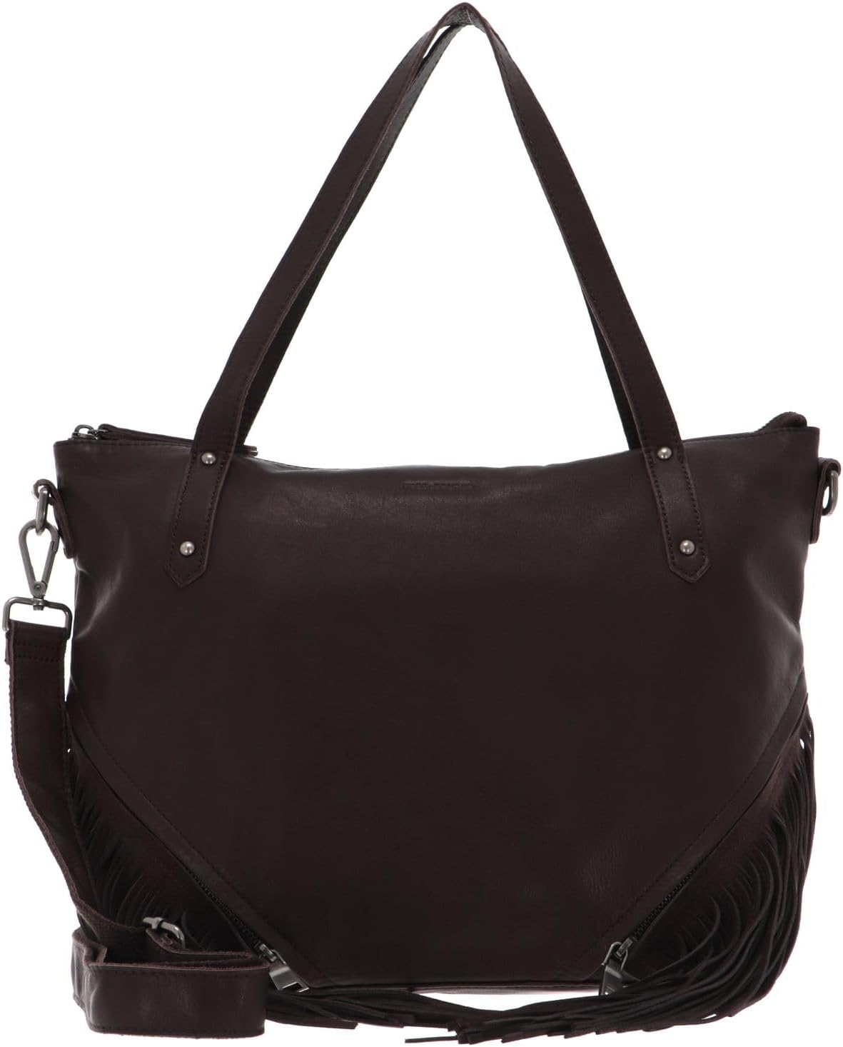 PRODUKTBESCHREIBUNGEN FREDsBRUDER Schultertasche mit abnehmbaren Fransen Daten Schultertasche: o Masse: Breite ca. 44 cm, Höhe ca. 30 cm, Tiefe ca. 18 cm o Gewicht: ca. 740 g o Farbe: Brown (Braun) o 2 Henkel: ca. 53 cm o 1 Schulterriemen abnehmbar, stufenlos verstellbar: ca. 80 cm - 135 cm o Material: 100% Rindsleder, innen 100% Polyester o Lieferumfang: FREDsBRUDER Schultertasche mit Etikett, Schulterriemen, Staubbeutel, 2 x Fransen Ausstattung Schultertasche: o Schultertasche wird mit Zipper geschlossen o Im Hauptfach 1 Zipperfach und 3 Einschubfächer o Mit verstärktem Boden ausgestattet o Besitzt geräumiges Hauptfach o Das FREDsBRUDER Logo ist gut sichtbar eingearbeitet FREDsBRUDER Frim Collection Tin Shoulder Bag - Die raffinierte Schultertasche für den Alltag Diese FREDsBRUDER Tasche überzeugt wirklich jeden! Die FREDsBRUDER Frim Collection Tin Shoulder Bag ist aus weichem Rindsleder, welches angenehmen Tragekomfort verspricht. Tragen Sie die Tasche lässig im Alltag mit den coolen Fransen auf der Vorderseite oder nehmen Sie diese ganz einfach mit dem Zipper ab, sodass die Schultertasche einen schicken Touch bekommt. In dem geräumigen Hauptfach finden Sie Platz für all Ihre Habseligkeiten. Dank eines abnehmbaren Schulterriemens können Sie diesen Liebling auch als Umhängetasche tragen.
