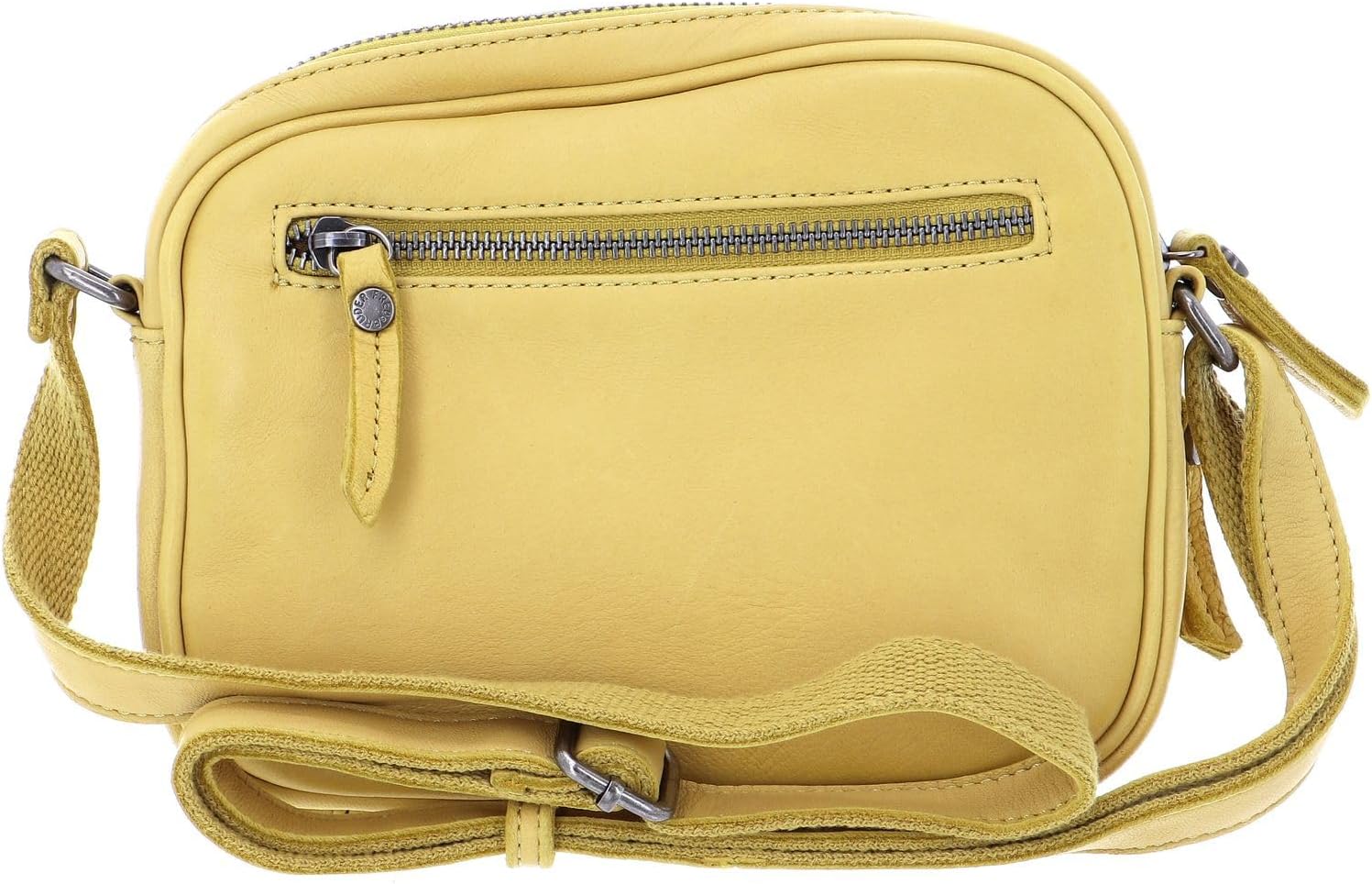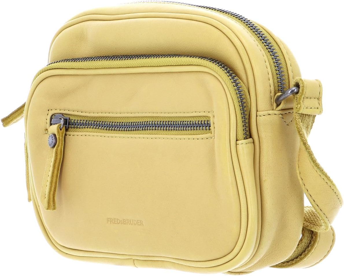 PRODUKTBESCHREIBUNGEN FREDsBRUDER Umhängetasche als kleiner Alltagshelfer Daten Umhängetasche: o Masse: Breite ca. 20 cm, Höhe ca. 16 cm, Tiefe ca. 5,5 cm o Gewicht: ca. 350 g o Farbe: Lemon (Gelb) o 1 Schulterriemen, stufenlos verstellbar: ca. 70 cm - 132 cm o Material: Aussen 100% Schafsleder, innen 100% Polyester o Lieferumfang: FREDsBRUDER Umhängetasche mit Etikett, Staubbeutel Ausstattung Umhängetasche: o Umhängetasche wird mit Zipper geschlossen o Im Hauptfach 1 Einschubfach, 1 Schlüsselfinder und 1 Zipperfach o Auf der Vorderseite 1 aufgesetztes Zipperfach o Auf der Vorderseite und Rückseite 1 Zipperfach o Mit verstärktem Boden ausgestattet o Das FREDsBRUDER Logo ist gut sichtbar eingearbeitet FREDsBRUDER Polly Lila - Die Umhängetasche mit vielen Zipeprfächern Schlicht, lässig und praktisch! Hier landen Sie einen Volltreffer! Die neue FREDsBRUDER Umhängetasche begeistert mit ihrem himmlisch weichen Schafsleder und der kompakten Grösse. Für kleinere Unternehmungen oder das Verstauen Ihrer Wertsachen eignet sich die Tasche bestens! In den verschiedenen Zipperfächern lässt sich alles organisiert verstauen. Der Schulterriemen ist in seiner Grösse verstellbar und passt so individuell. Mit der FREDsBRUDER Polly Lila machen Sie alles richtig!