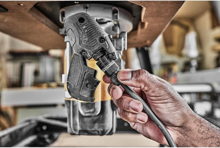 - Praktisch im Alltag: Handgriffe mit 2-Finger Schalter & Arretierung für Dauerbetrieb, Zusatzschalter für stationäre Tischmontage kann optional angeschlossen werden & 3-stufiger Revolveranschlag für Serien-Fräsarbeiten