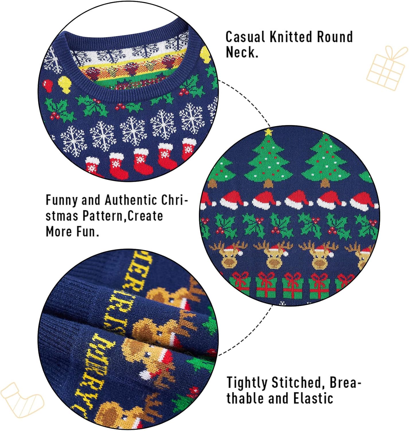 - ❤❤Neuheit & Funny Xmas Design: Gestrickt mit niedlichen Rentier/ Weihnachtsmann / Schneeflocke / String Licht und Ritter Grafik; Erhöhen Sie die frohe und lustige Atmosphäre von Weihnachten.