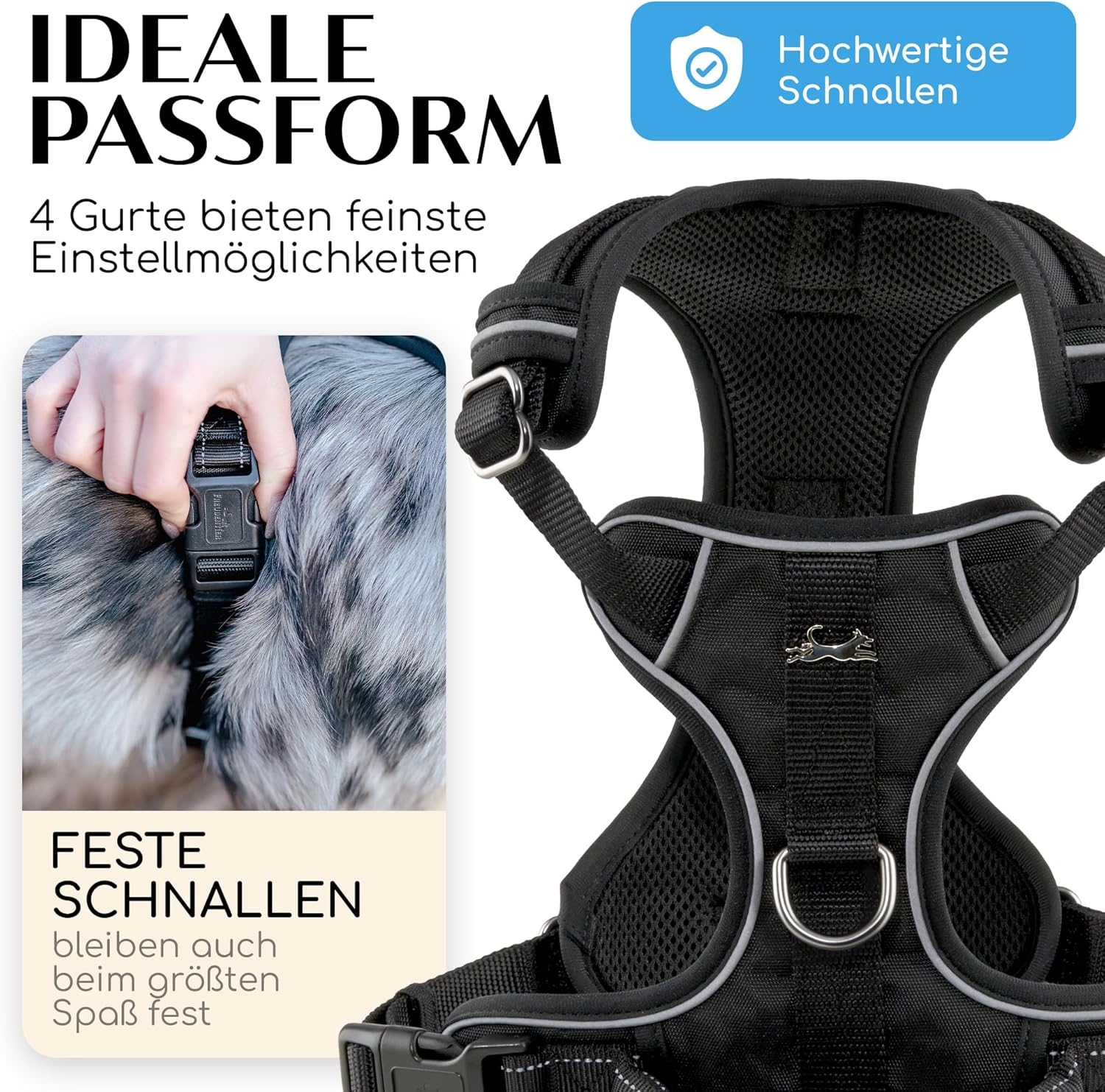 • SICHERHEIT OHNE KOMPROMISSE: An den Rändern der Geschirrs sind hocheffektive Reflektoren eingearbeitet. Für maximale Sicherheit im Dunkeln!