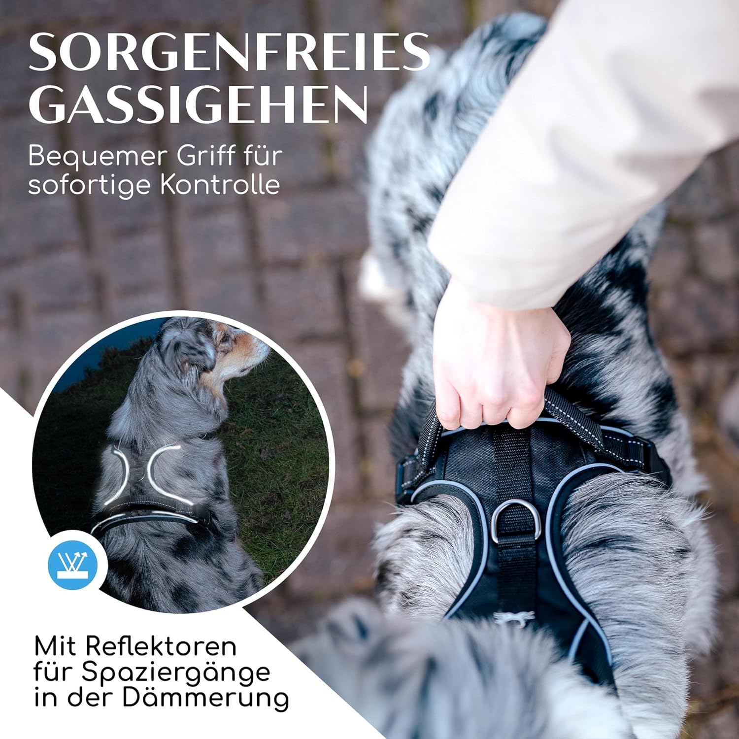 • ANTI-ZUG-FUNKTION: Am Bruststeg ist ein zweiter Ring für die Verwendung als Anti-Zug-Geschirr vernäht. Bitte kläre die korrekte Verwendung unbedingt mit deinem Hundetrainer ab!