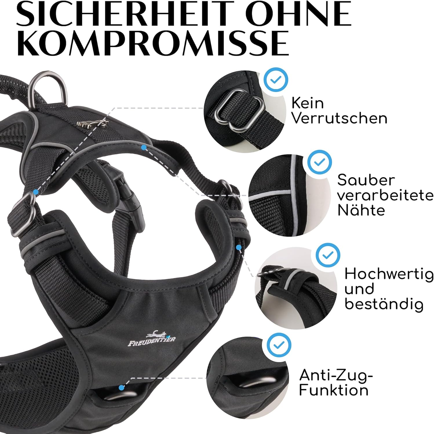 FREUDENTIER® Hundegeschirr mit atmungsaktiver Mesh-Polsterung - Höchster Komfort & bombenfester Sitz