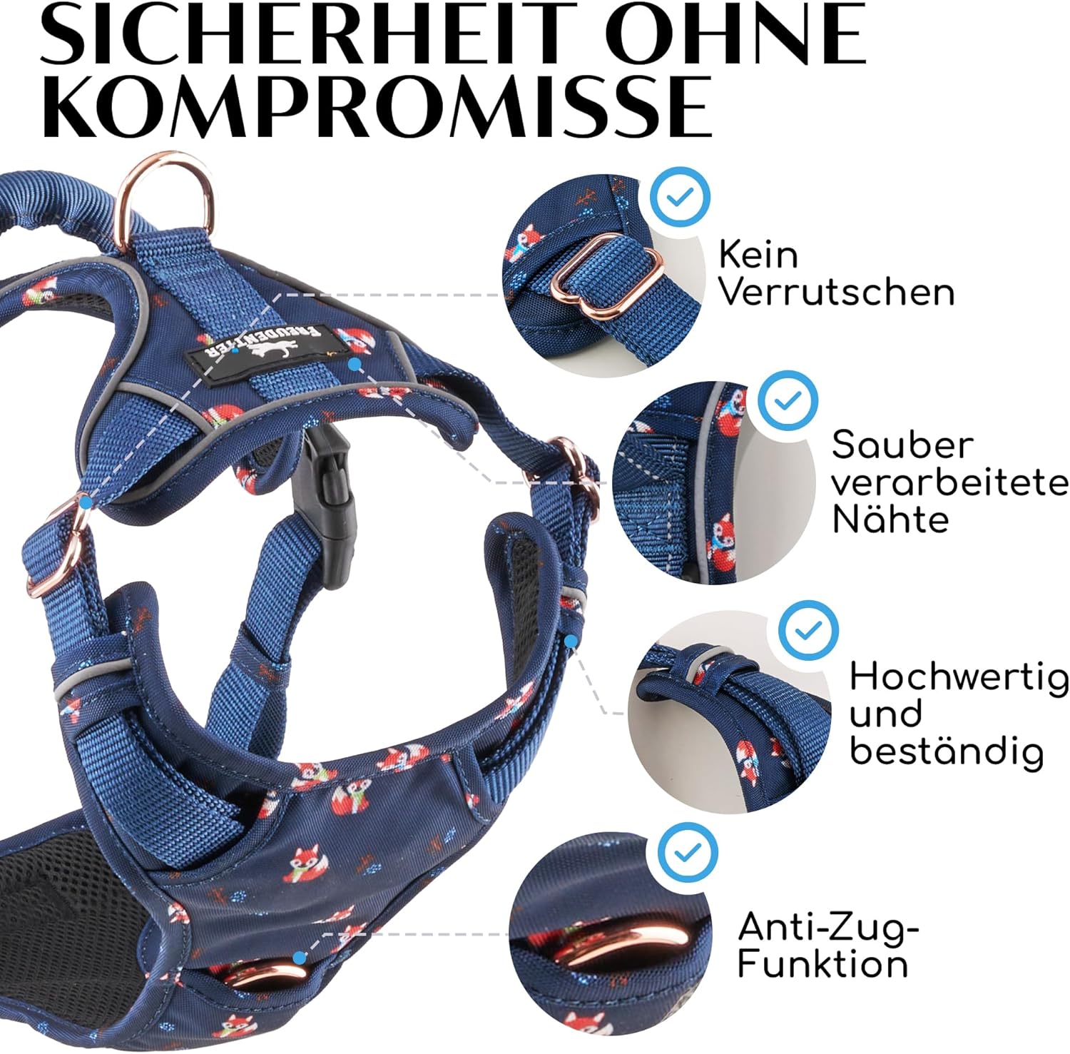 FREUDENTIER® atmungsaktives Hundegeschirr - komfortabel gepolstert - Let’s get Foxy Kollektion - 100