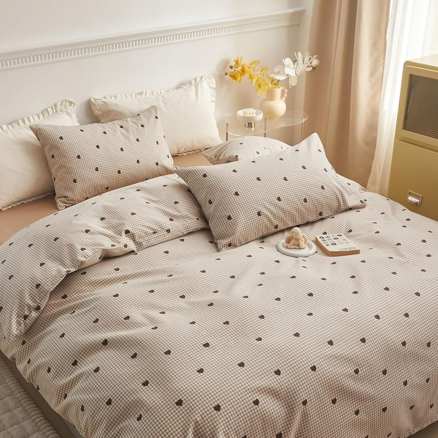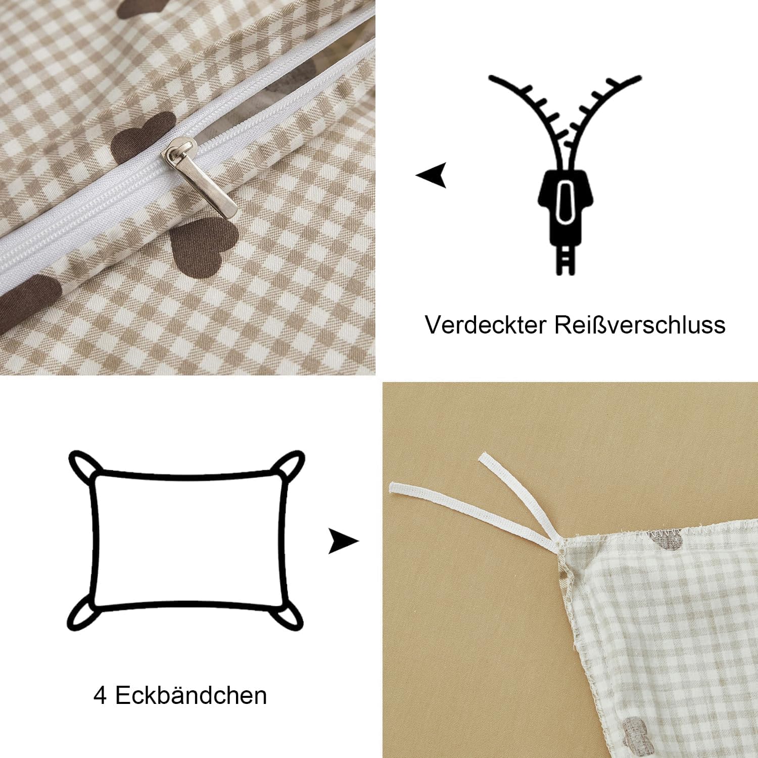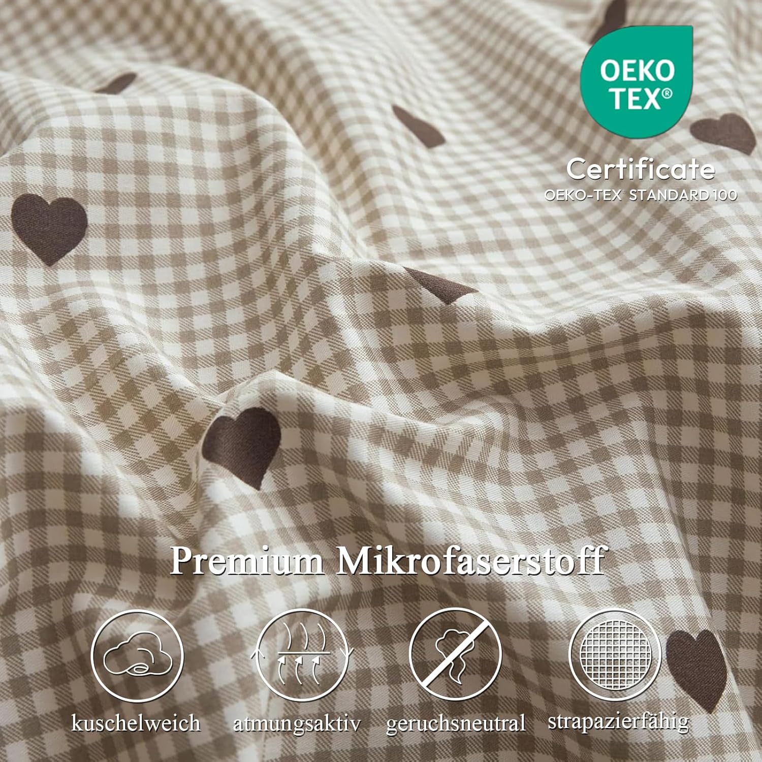 - ❤ Modisches Design: Der Wendebettbezug ist mit Liebesherzen und Karomuster auf beiden Seiten bedruckt, die schicke Übereinstimmung macht das Bettwäscheset einzigartig und romantisch aussehen, optisch und strukturell ansprechend, eine grosse