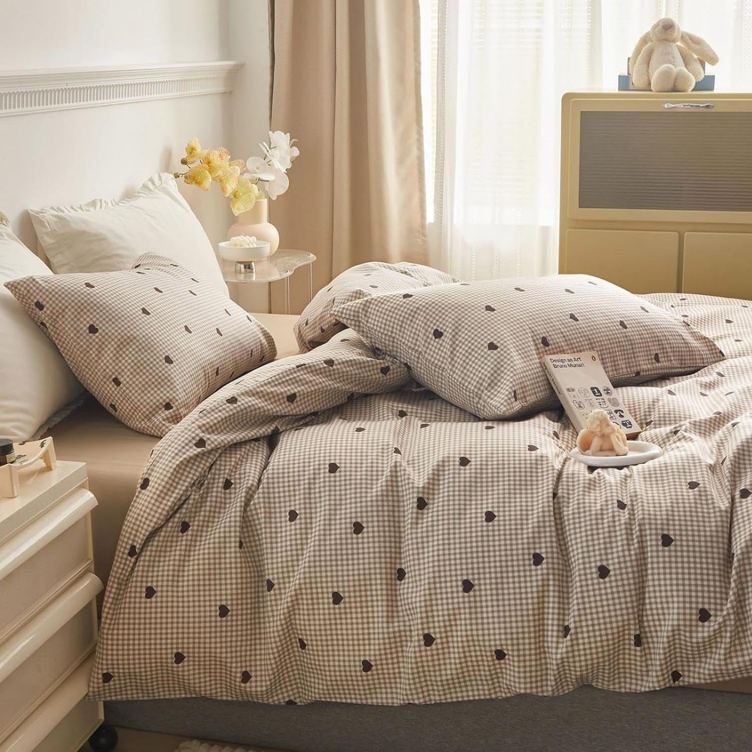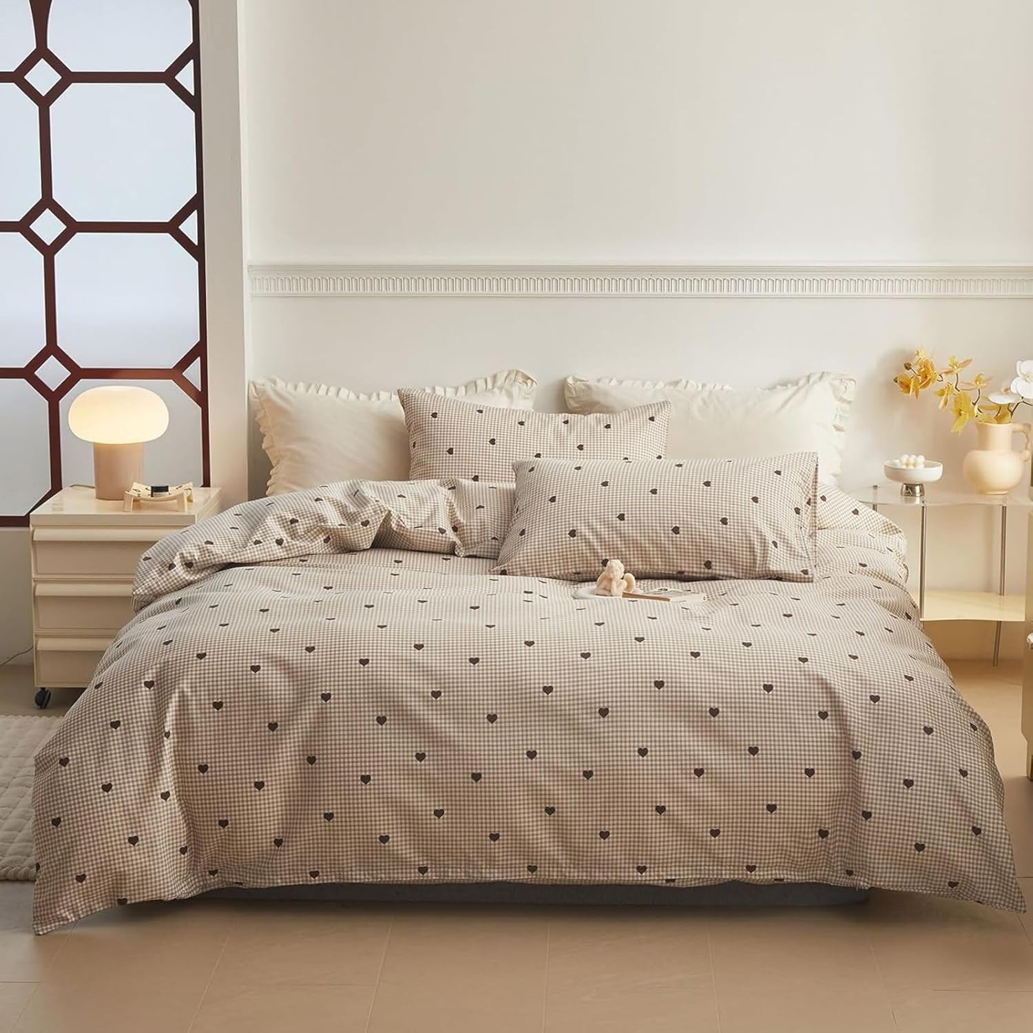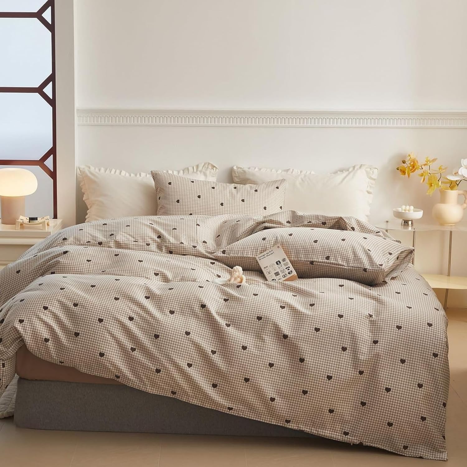 - ❤ Modisches Design: Der Wendebettbezug ist mit Liebesherzen und Karomuster auf beiden Seiten bedruckt, die schicke Übereinstimmung macht das Bettwäscheset einzigartig und romantisch aussehen, optisch und strukturell ansprechend, eine grosse