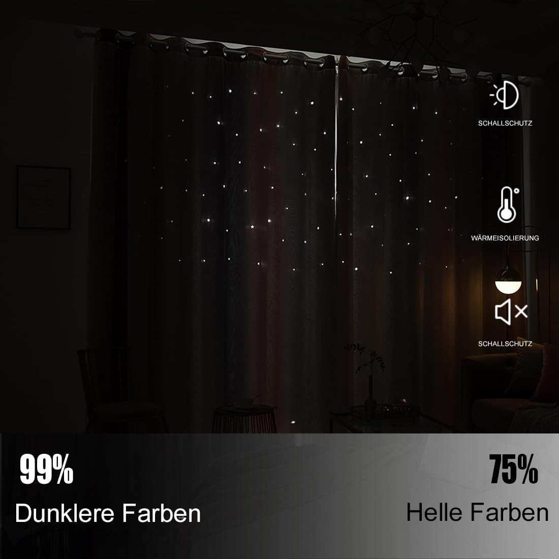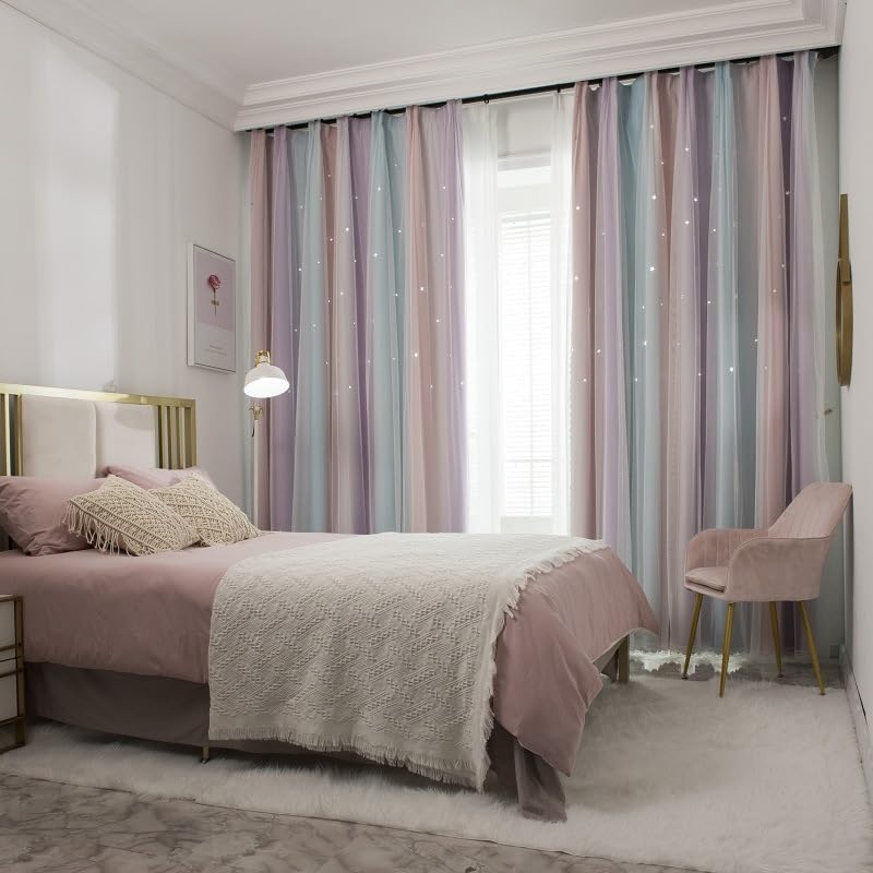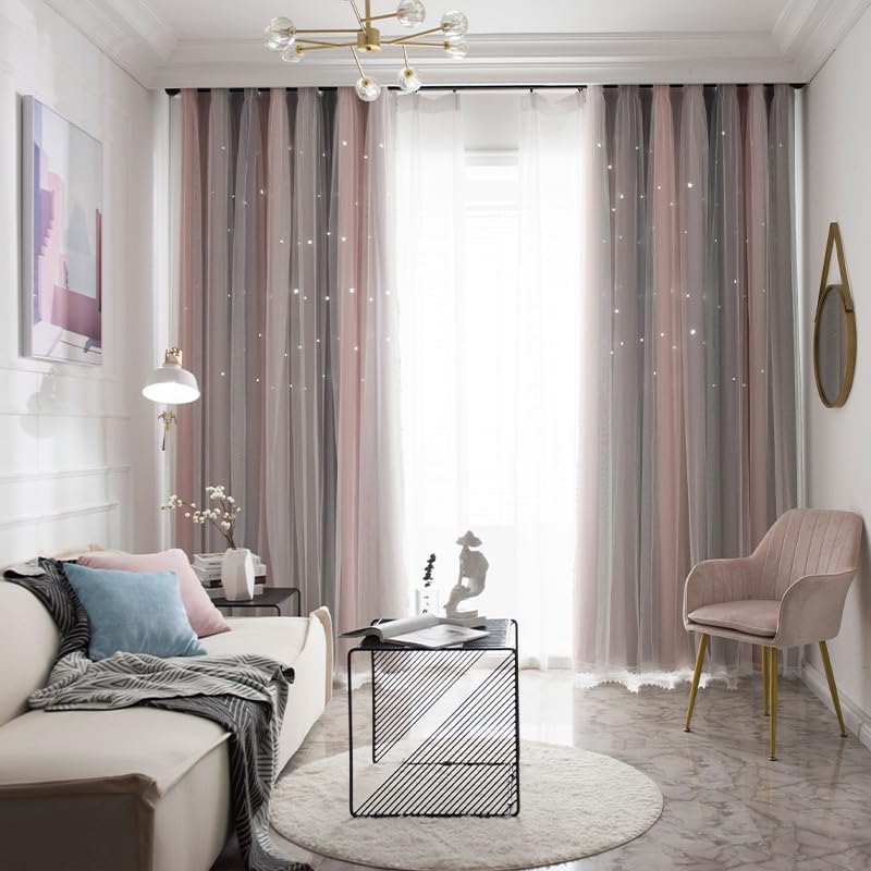 - 【SCHICKES DESIGN】Die Gardine hat ein einfaches Design und bequem Tastempfindung. Die Vorhänge mit reichen Farben können Ihren Raum passen.Das Ihrem Interieur eine moderne und raffinierte Note verleiht.Die Sterne sind aus Hollow-out gefertigt, was