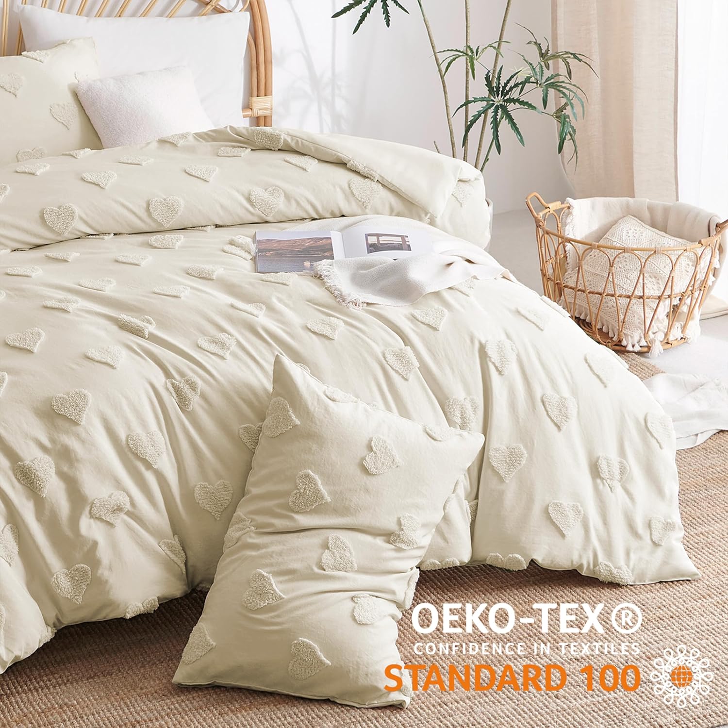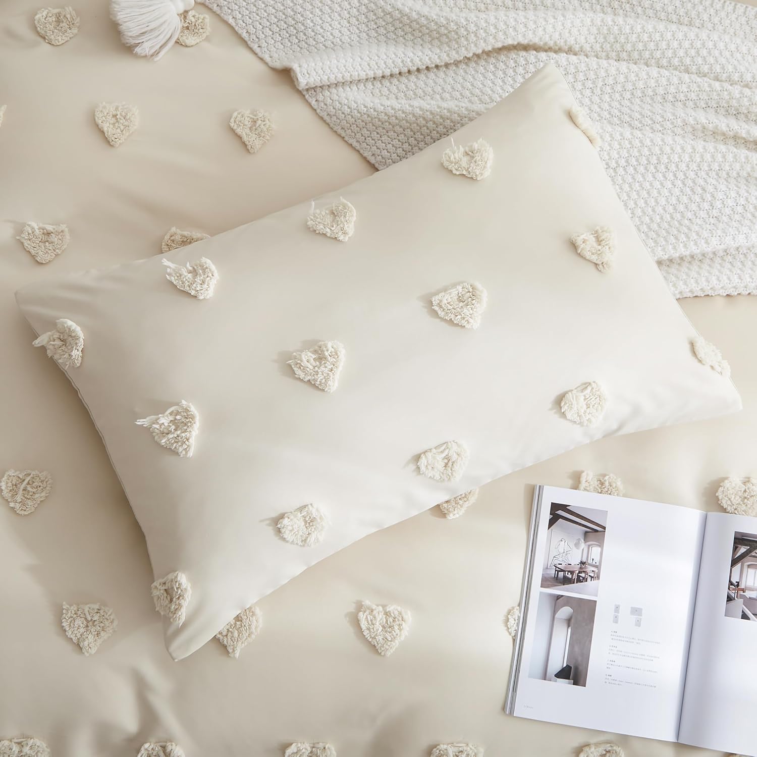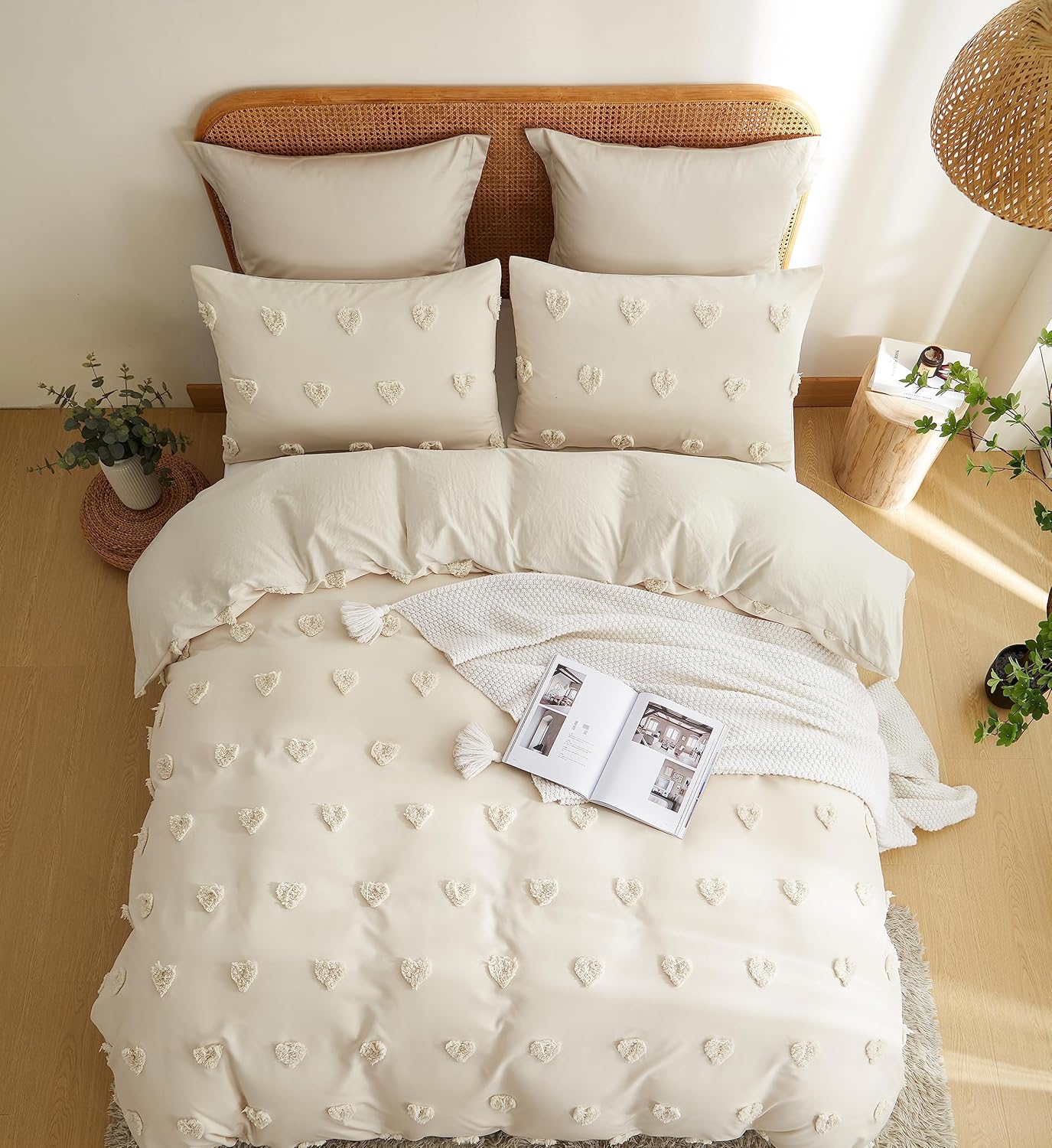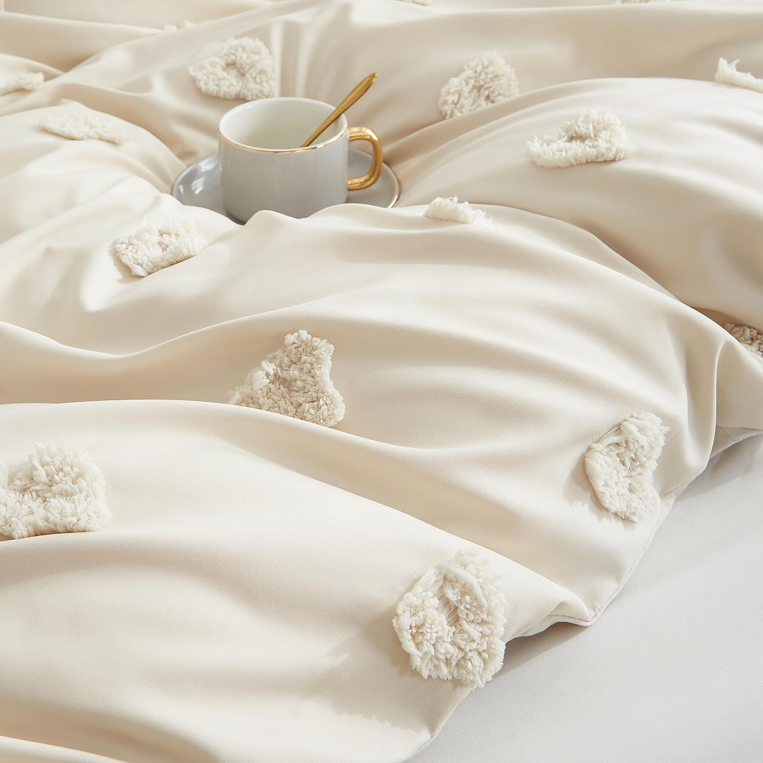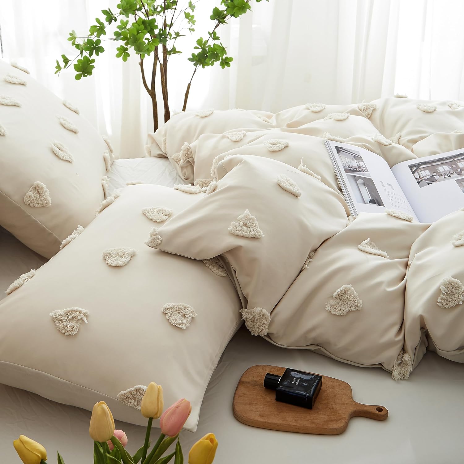 - 【Luxuriöses Aussehen】Der beige getuftete bettbezug ist handgefertigt, dreidimensionales faltendesign, unzählige schöne liebesmuster sorgen für visuellen charme und schaffen einen romantischen stil. Böhmischer stil, geometrisches muster,