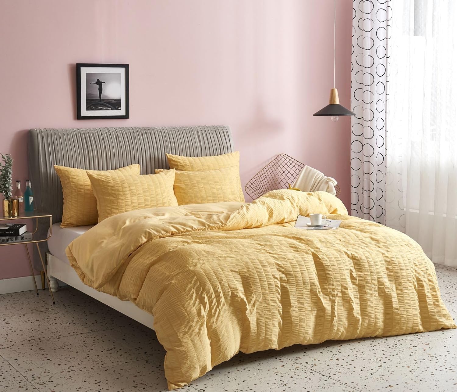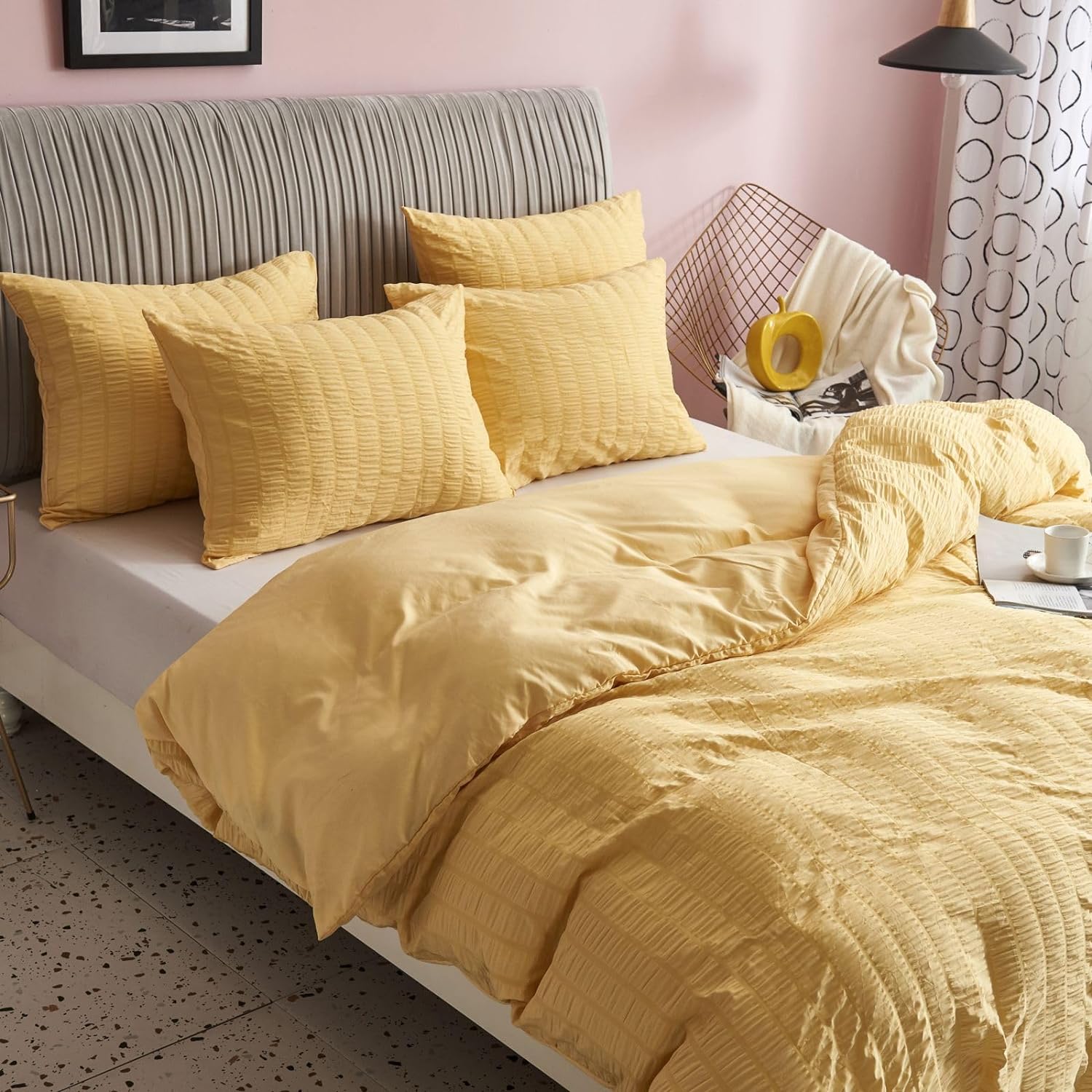 - Seersucker-Design: Das elegante und modische Bettwäsche-Set nimmt den seersucker-Prozess an, und die unregelmässigen Falten schmücken die einzigartige Persönlichkeit und das künstlerische Gefühl der Bettdecke und lassen sie schöner aussehen. Die