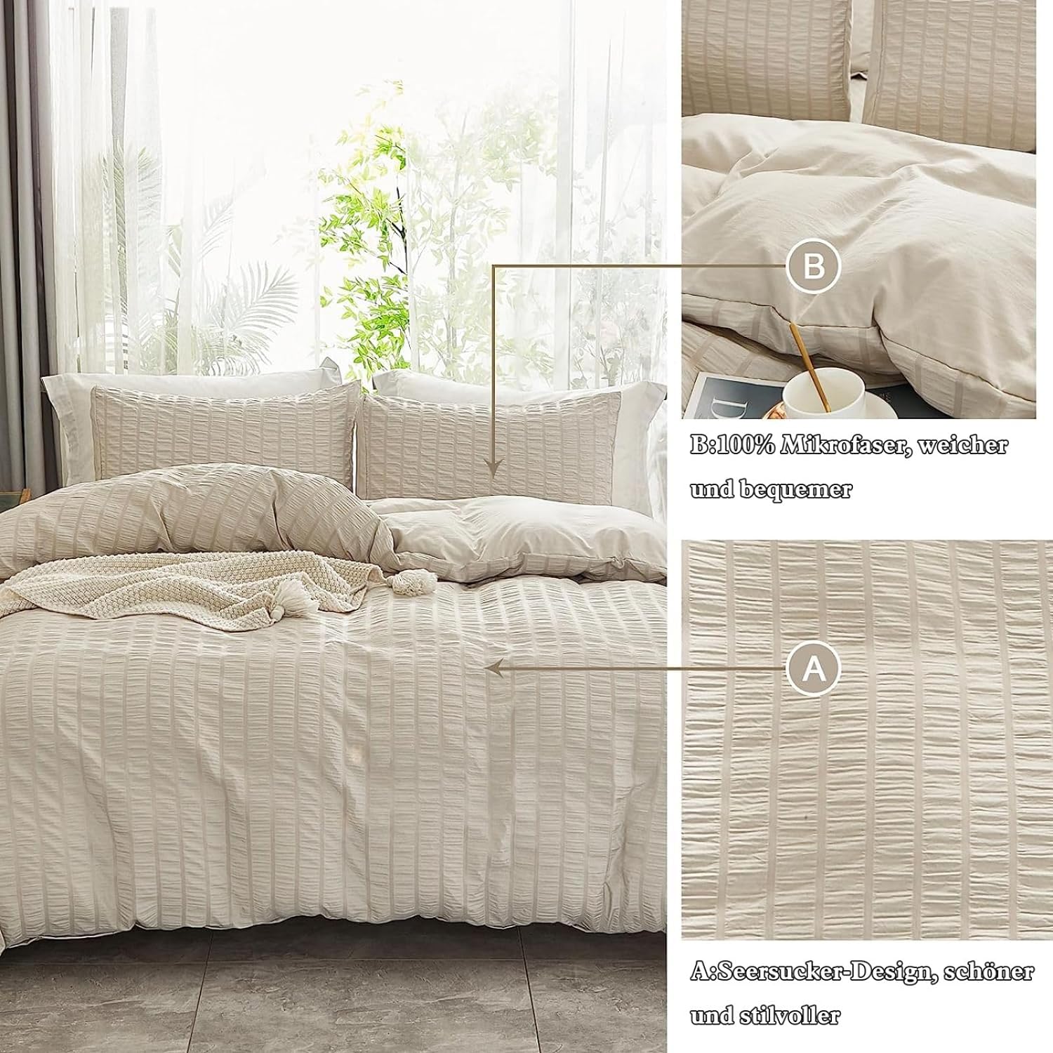 - Hochwertiges Material: Das seersucker Bettwäsche-Set besteht aus 100% Gebürstet Microfaser, das leicht, atmungsaktiv, ultra-weich und bequem, langlebig und hypoallergen ist, das Gefühl von Baumwolle hat und sehr hautfreundlich ist. Ausgezeichnete
