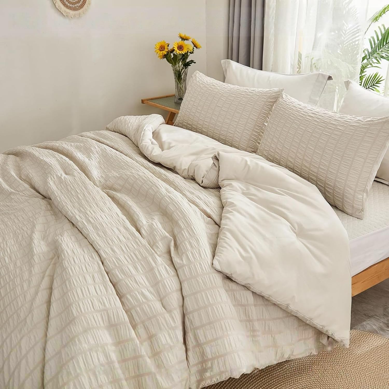- Seersucker-Design: Das elegante und modische Bettwäsche-Set nimmt den seersucker-Prozess an, und die unregelmässigen Falten schmücken die einzigartige Persönlichkeit und das künstlerische Gefühl der Bettdecke und lassen sie schöner aussehen. Die