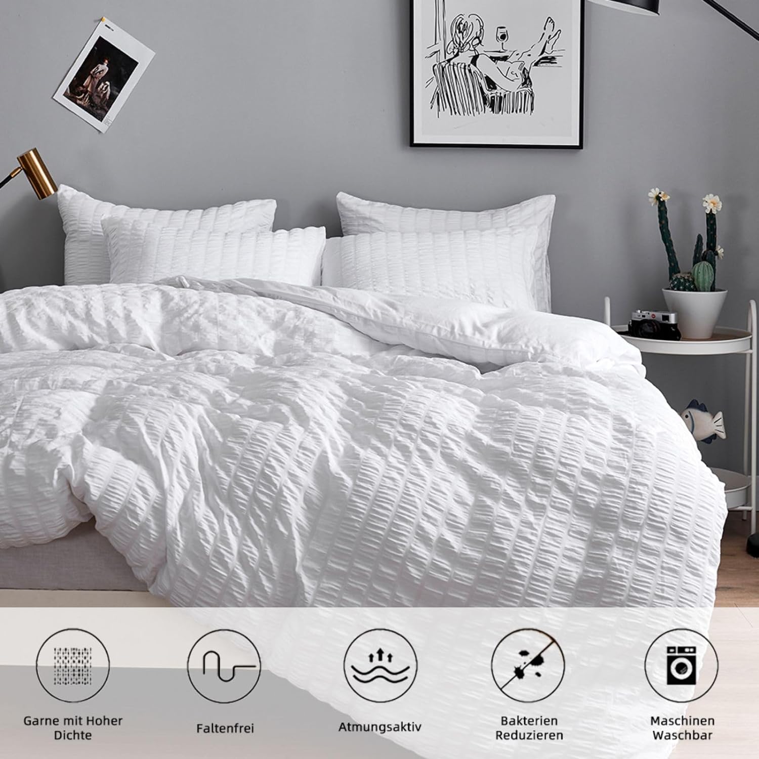 - Hochwertiges Material: Das seersucker Bettwäsche-Set besteht aus 100% Gebürstet Microfaser, das leicht, atmungsaktiv, ultra-weich und bequem, langlebig und hypoallergen ist, das Gefühl von Baumwolle hat und sehr hautfreundlich ist. Ausgezeichnete
