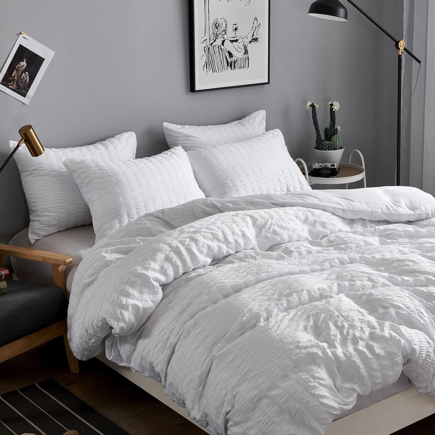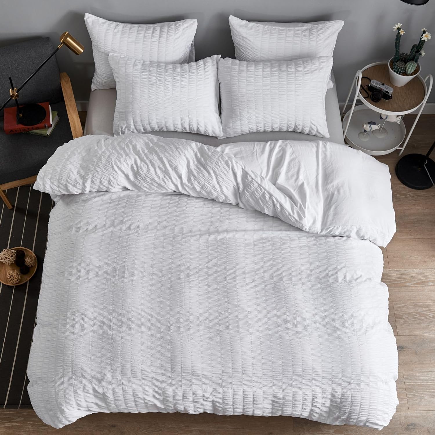 - Seersucker-Design: Das elegante und modische Bettwäsche-Set nimmt den seersucker-Prozess an, und die unregelmässigen Falten schmücken die einzigartige Persönlichkeit und das künstlerische Gefühl der Bettdecke und lassen sie schöner aussehen. Die