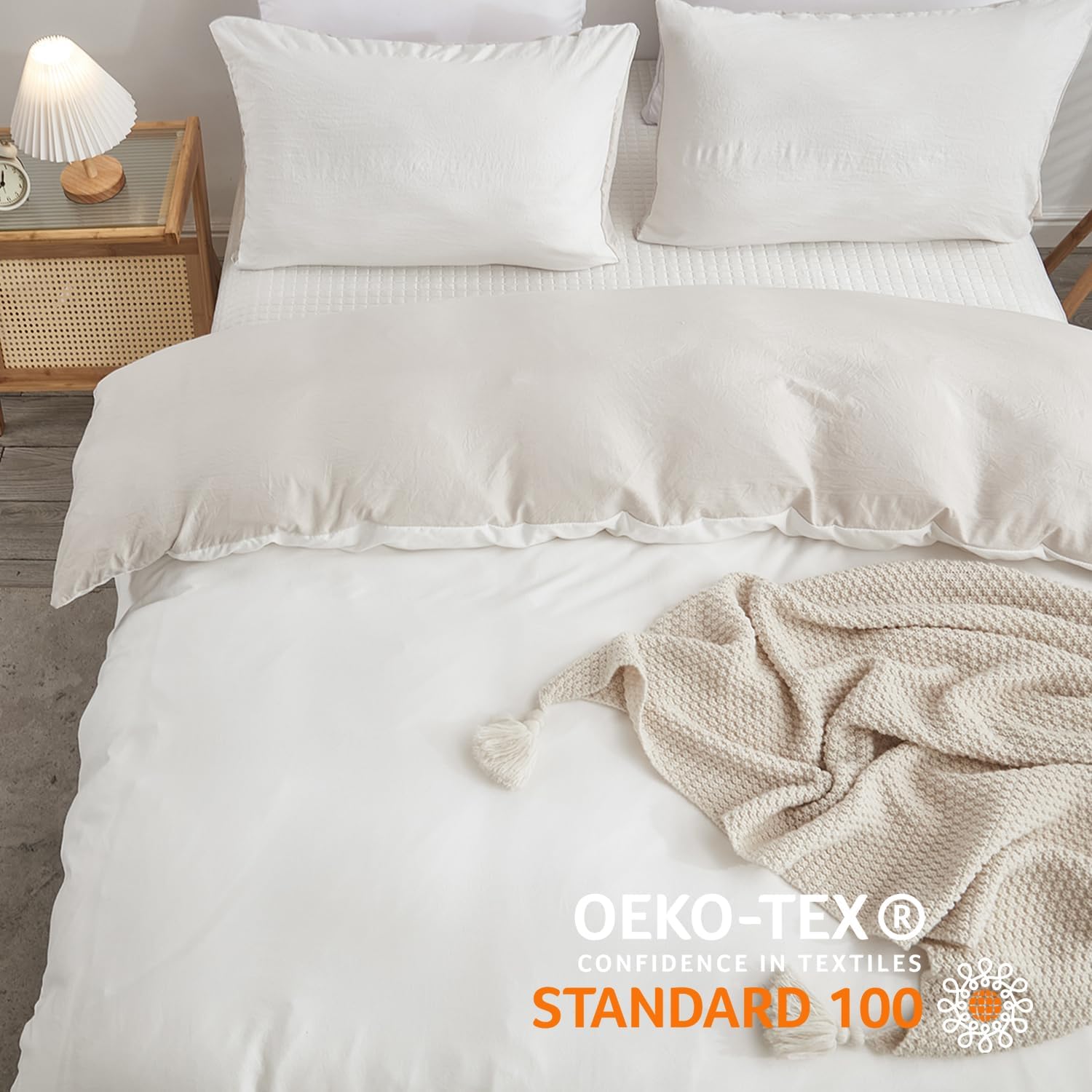 Freyamy Wendbar Bettwäsche 135x200cm 2teilig Weiss Beige Unifarben Uni Wendebettwäsche Gewaschene Mi