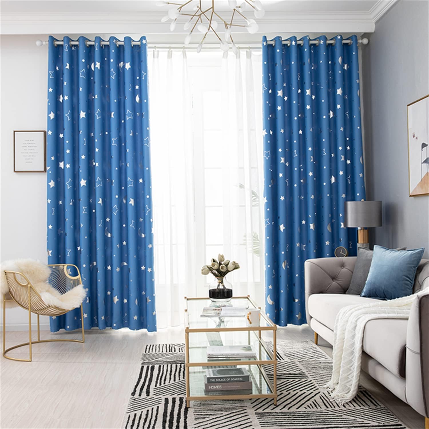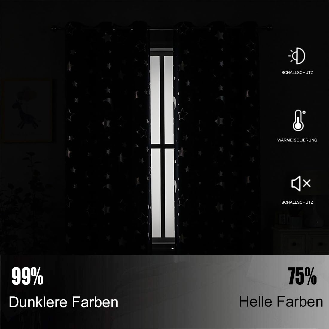 - 【SCHICKES DESIGN】Die Vorhänge wurden Vergoldung Handwerkskunst unterzogen und sind mit leuchtenden und glänzenden Sternen und dem Mond bedeckt. Es hat ausgezeichnete Berührung und Farbglanz, blendend und auffällig.Diese Muster sind süss und