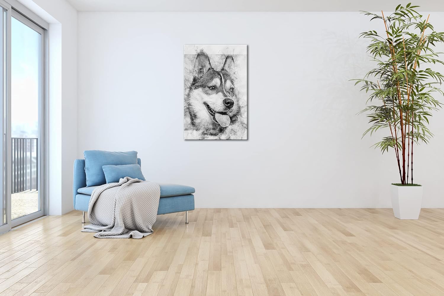 deyoli friedlicher Hund Effekt: Schwarz&Weiss Format: 80x60 als Leinwandbild, Motiv fertig gerahmt a