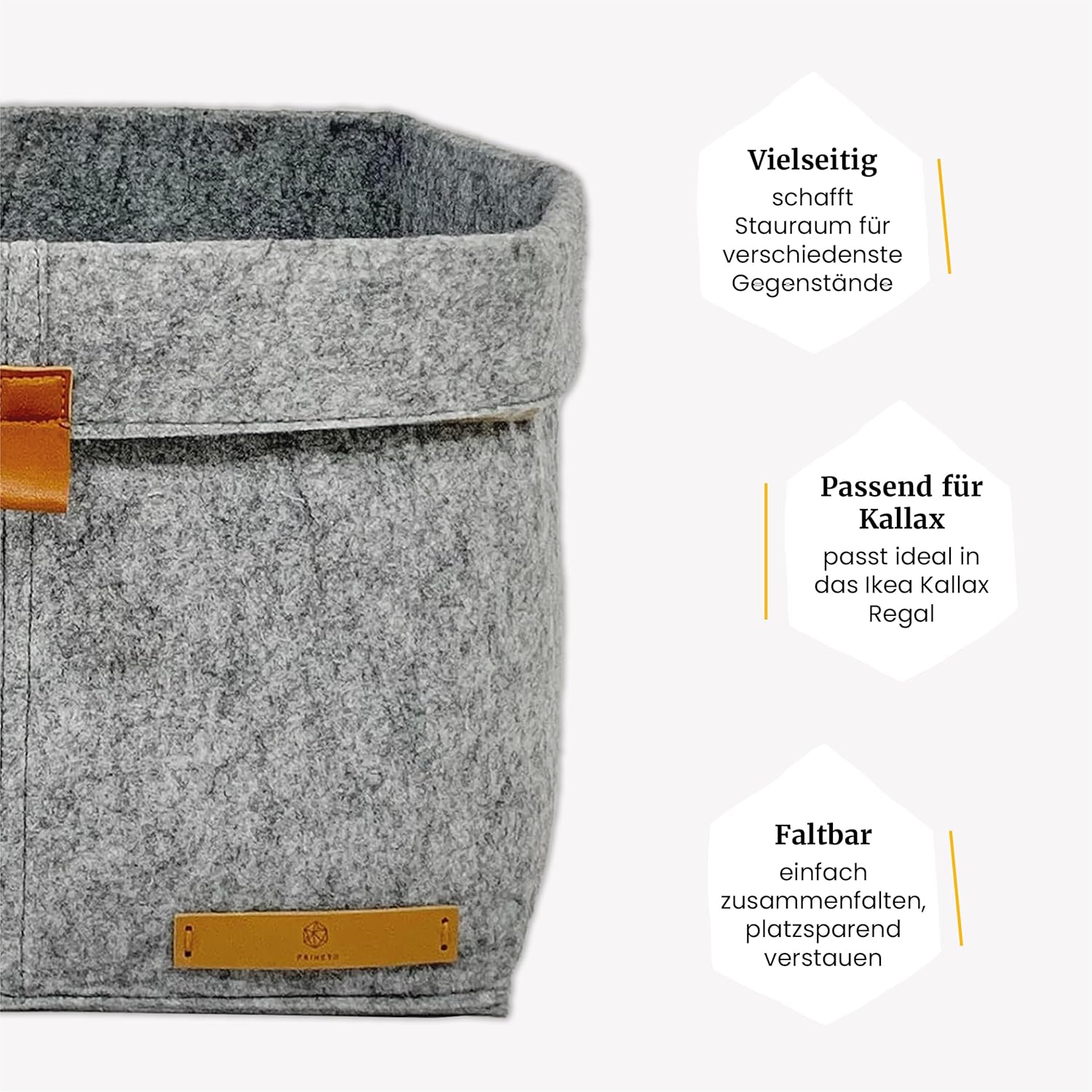 - Bringen Sie Stil und Organisation in Ihr Zuhause mit unserem vielseitigen Filz-Aufbewahrungskorb. Dank seiner Passform, dem edlen Design und der praktischen Verstaubarkeit wird er schnell zu Ihrem unverzichtbaren Ordnungshelfer.