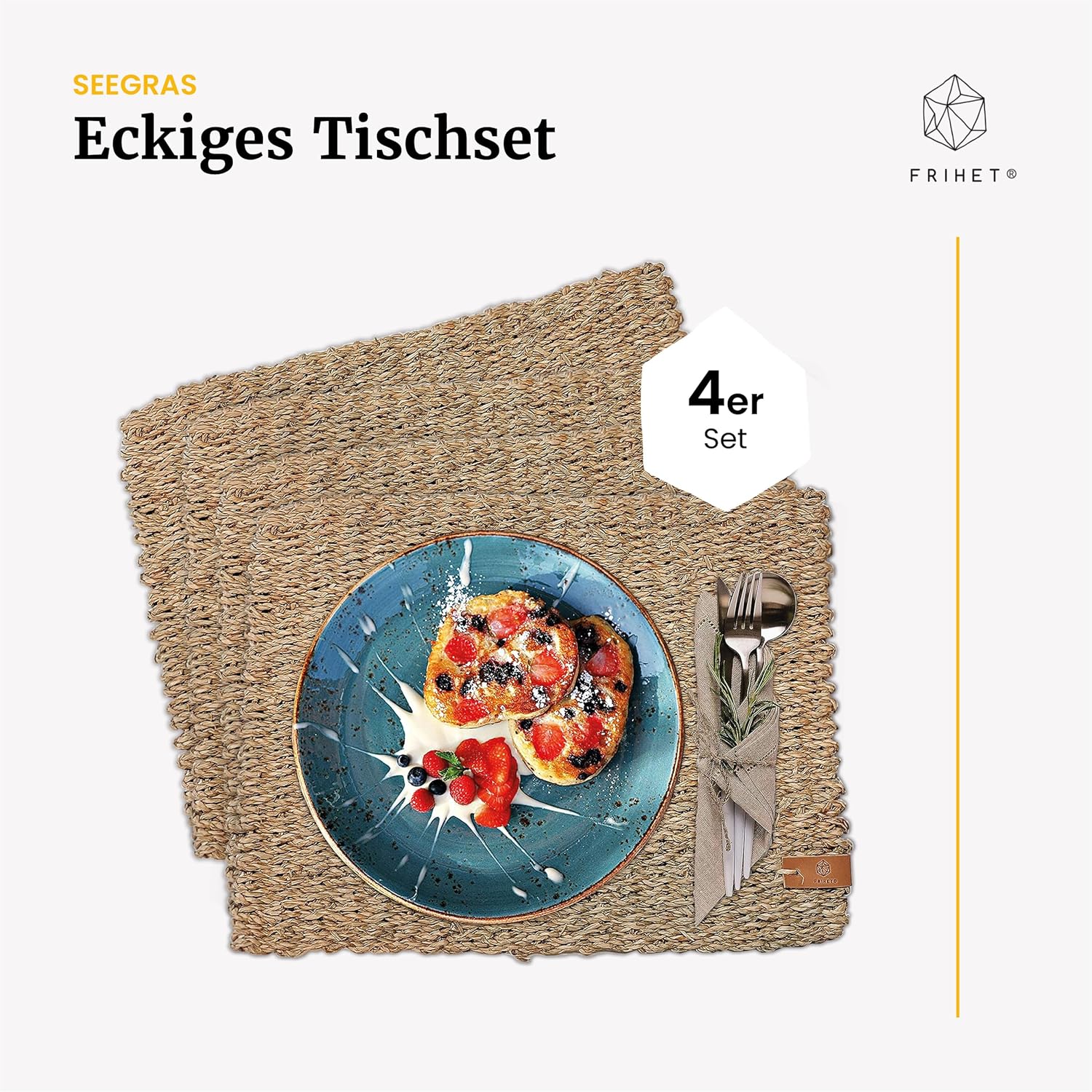 FRIHET Tischset eckig - Seegras geflochten (4er Set) Platzset 40x30cm, Natur Tischdeko, Tischsets Pl
