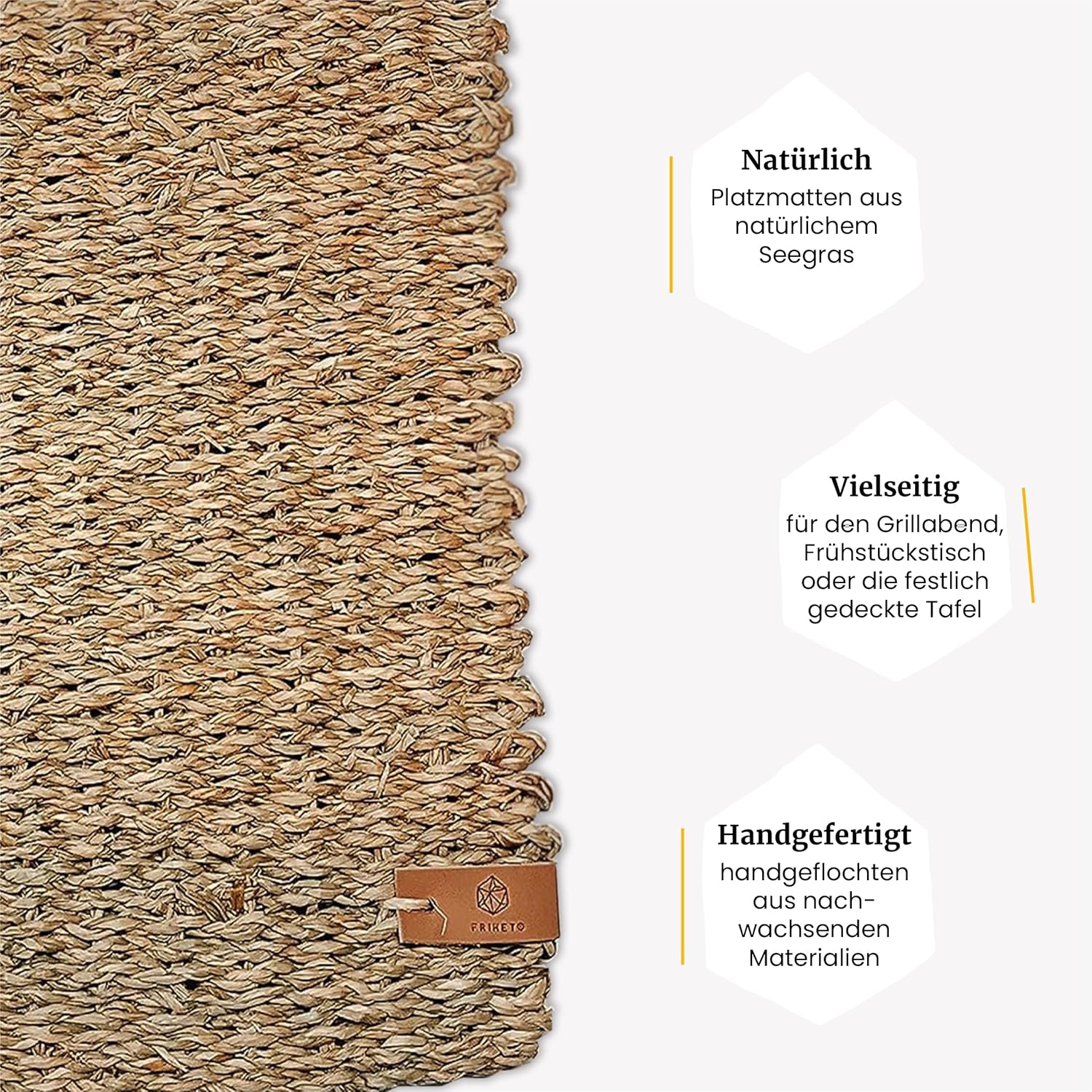 • Nachhaltiges Naturmaterial: Unsere Tischsets sind handgefertigt aus geflochtenem Seegras. Da Seegras ein natürliches und lebendiges Material ist, benötigen die Tischuntersetzer möglicherweise eine Weile, um sich nach dem Transport flach an den Tisch
