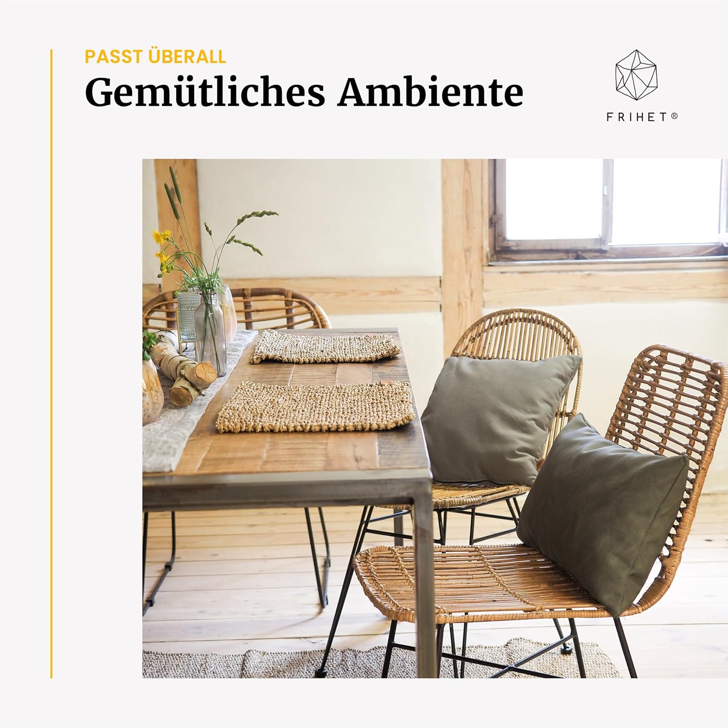 • Gemütlicher Style: Wenn Sie eine natürliche Optik im Hygge, BOHO, Bauernhaus oder Skandi Style mögen, sind unsere Tischmatten als Tischdeko oder als Unterlage für Deko / Teller usw. perfekt geeignet. Das FRIHET Lederlabel verleiht dem Tischset zudem