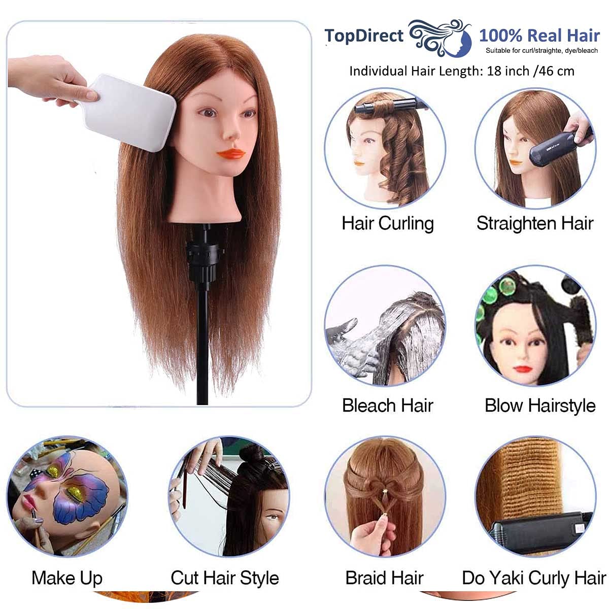 - 💇 【Friseurkopf】100% echtes Haar mit einer Dichte von 210-230 Haaren pro cm², alle von Hand eingeführt (also nicht so dicht wie der Kopf aus synthetischem Haar).