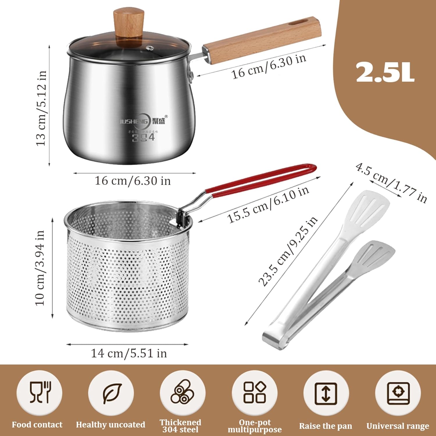 - Brennstoffeffizient und sicher: Mit einer Kapazität von 2,5 Litern ist dieser Frittyer-Topf geräumig und kann eine grosse Menge Lebensmittel mit minimalem Öl braten, wodurch Ölspritzer effektiv verhindern..Es ist hitzebeständig und für