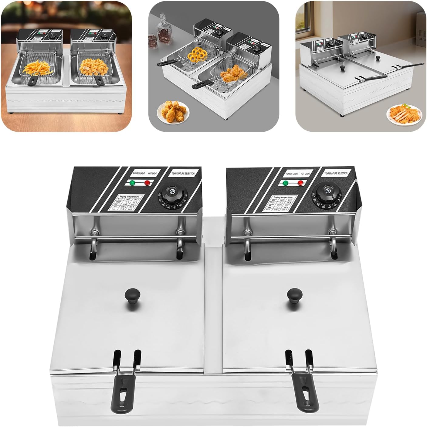Fritteuse mit Öl, 2500 W 6L Kommerzielle Fritteuse mit Frittierkorb Schlackenabscheider Deckel, 60-2