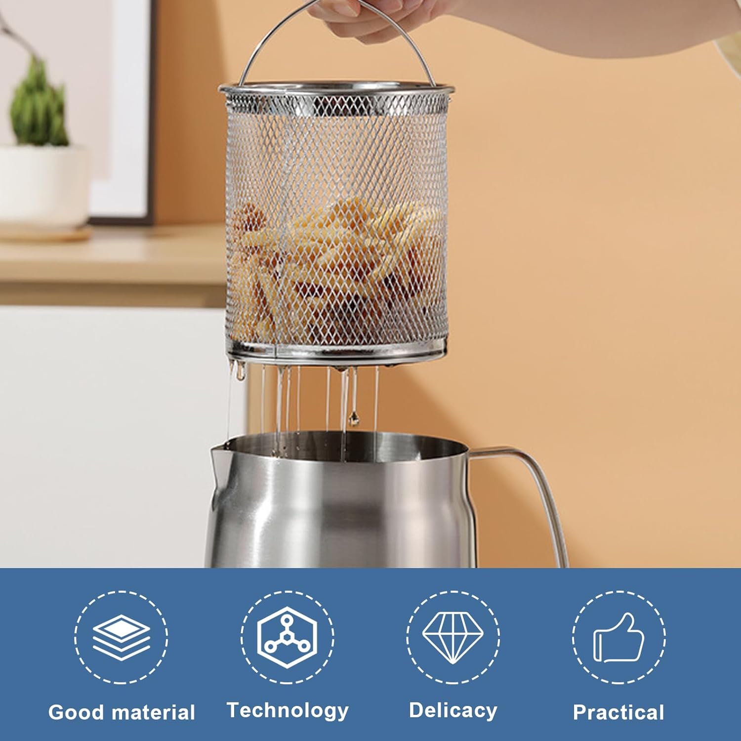 Frittiertopf, 2L Brattopf aus Edelstahl, Frittiertopf mit Sieb, Griff und Deckel, Kleiner Kochtopf z