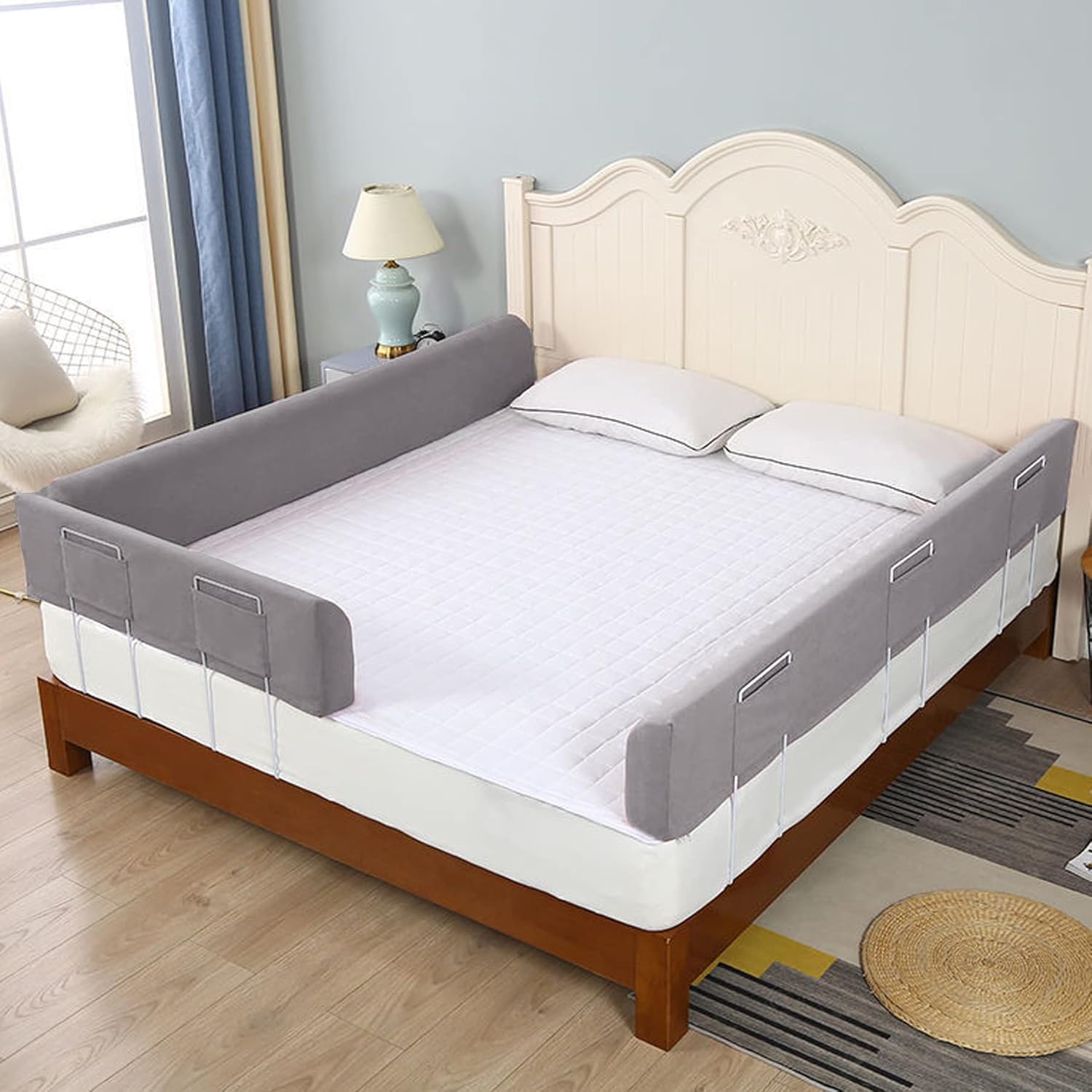 - Bettkantenschutz für Kinderbett: Material: Metall + Leinenstoff + Umweltfreundliche Perlenbaumwolle, Farbe: Leinengrau, Verfügbare Sets: 1 Stück / 2 Stück, Verfügbare Längen: 100 cm / 150 cm / 180 cm / 200 cm, Höhe des Softpacks ca. 24 cm., Dicke