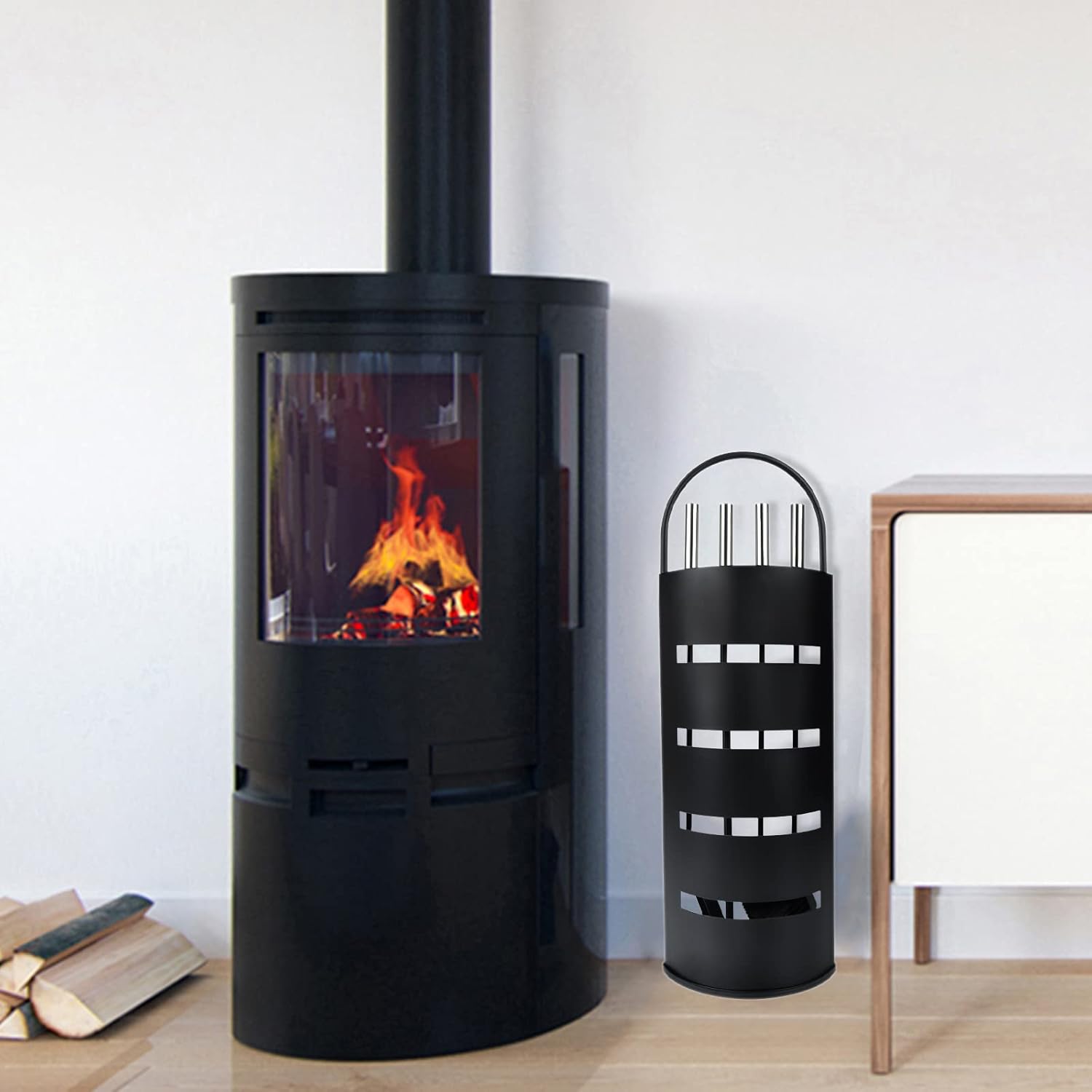 - 【Schön und elegant Kaminregal】Nach Gebrauch können Sie die Werkzeuge in dem freistehenden Werkzeughalter verstauen. Die Edelstahlmaske hat einen einfachen Ausschnitt und wird neben dem Kamin platziert, um eine gute Dekoration zu erzielen.