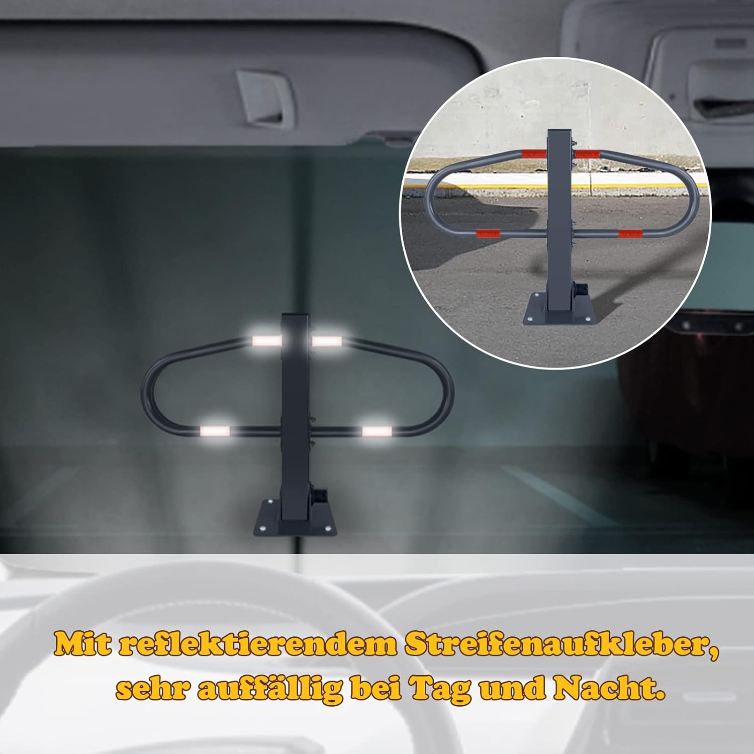 - 【Klappbare Parkplatzsperre】Gesamtabmessungen des Parkpollers im eingebauten Zustand: 73x51cm, Sockelgrösse: 18x18cm, Material: Stahl.
