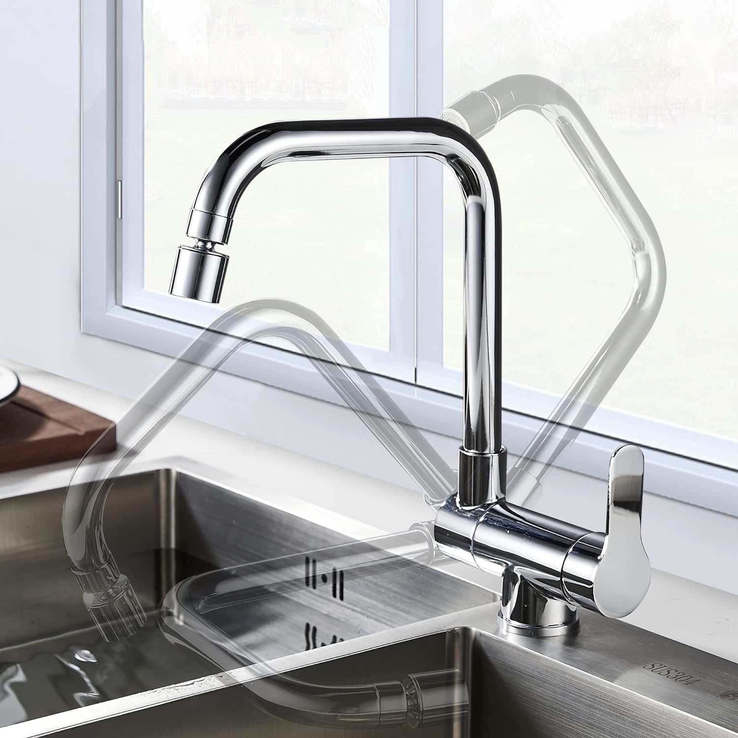 • 【Klappbare Frontfenster Küchenarmatur】Diese Spültischarmatur kann um 90° heruntergeklappt werden. Es kann das Problem lösen, Fenster können nicht geöffnet werden, platzsparend. Die Küchenarmaturen eignen sich einfach wunderbar für die Montage