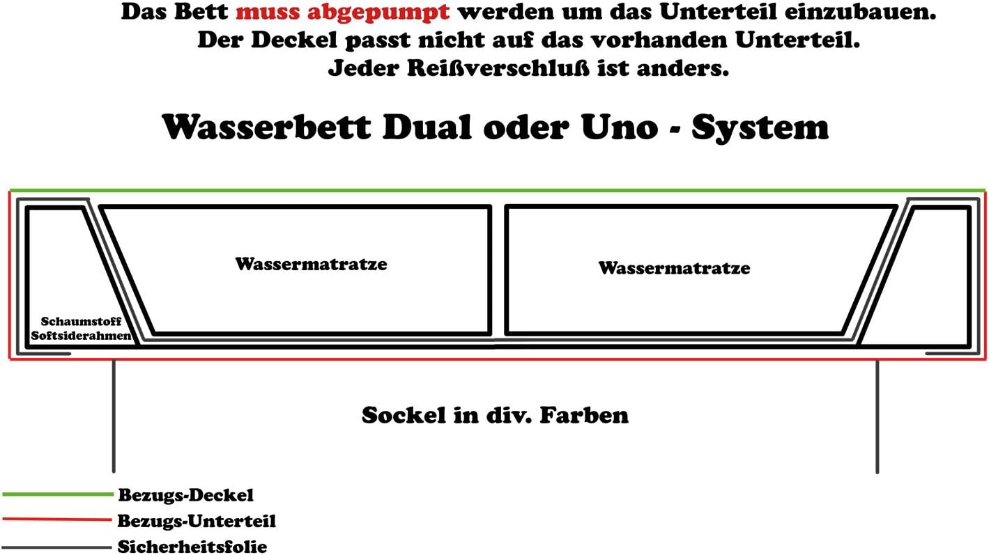 - Auflage ist mittig durch einen Reissverschluss teilbar - für Uno und Dual Wasserbetten Systeme geeignet