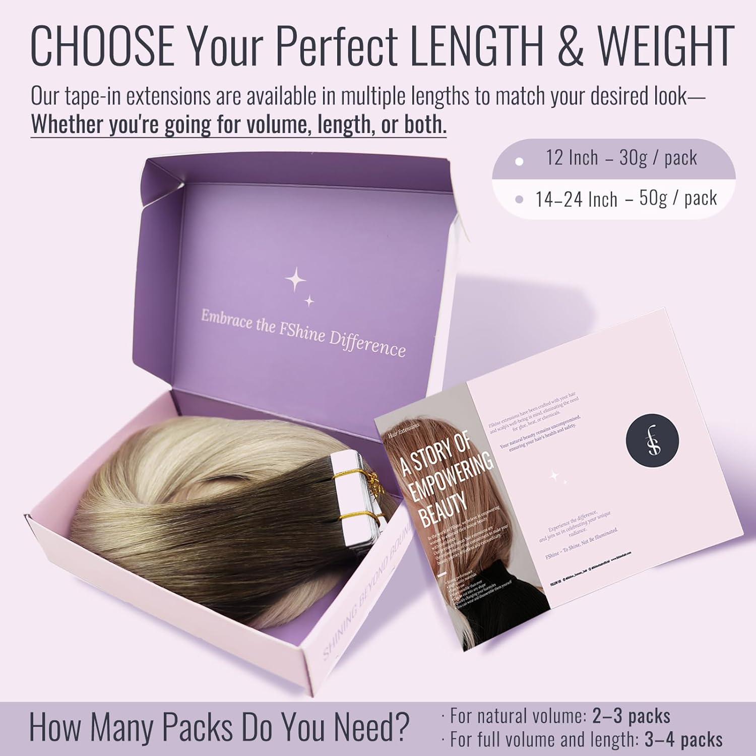 - Perfekt für Volumen und Fülle: Jede Packung Fshine Tape-in Haarverlängerungen enthält 20 Haarsträhnen. Für dezente Akzente verwenden Sie 1 Packung. Für mehr Volumen sind 2-3 Packungen ideal, während 4-5 Packungen Ihnen ein volles, luxuriöses