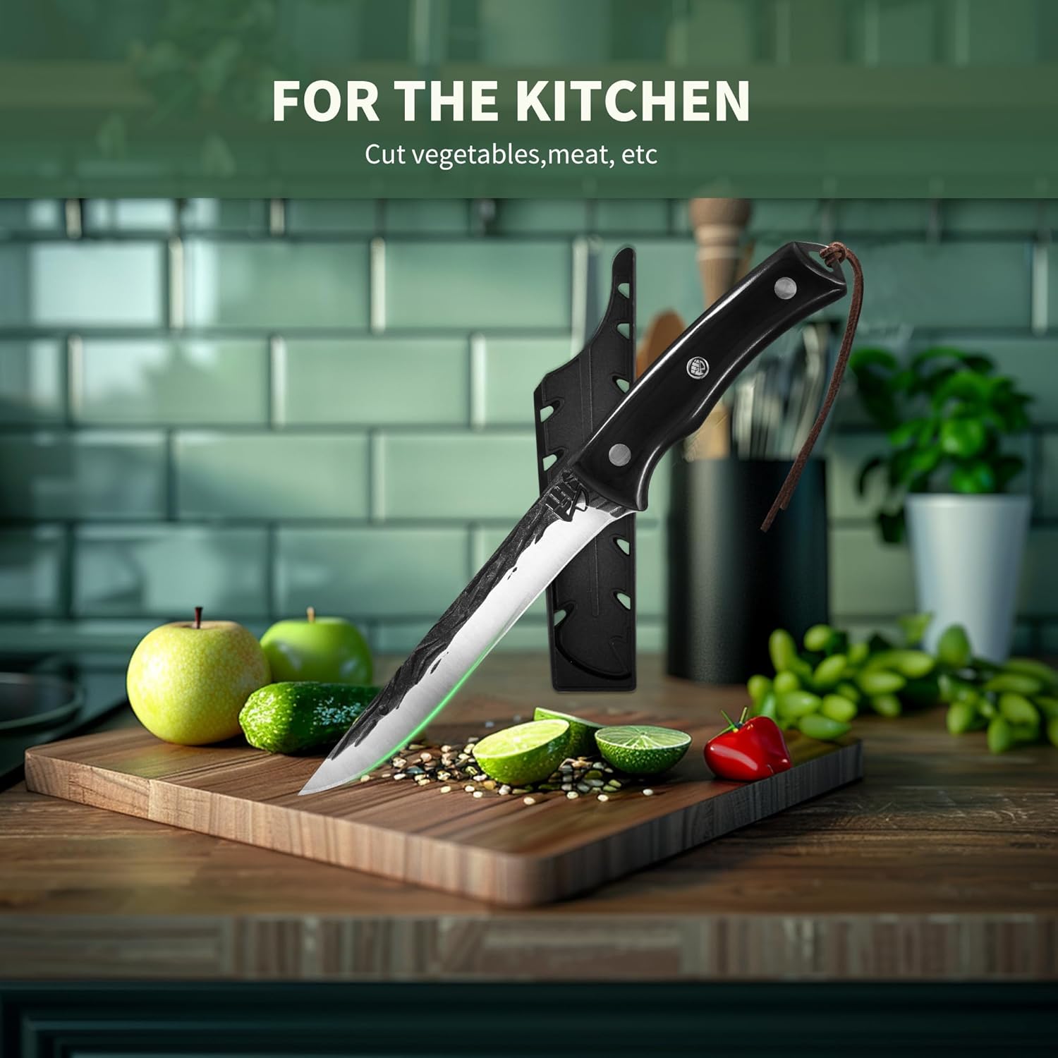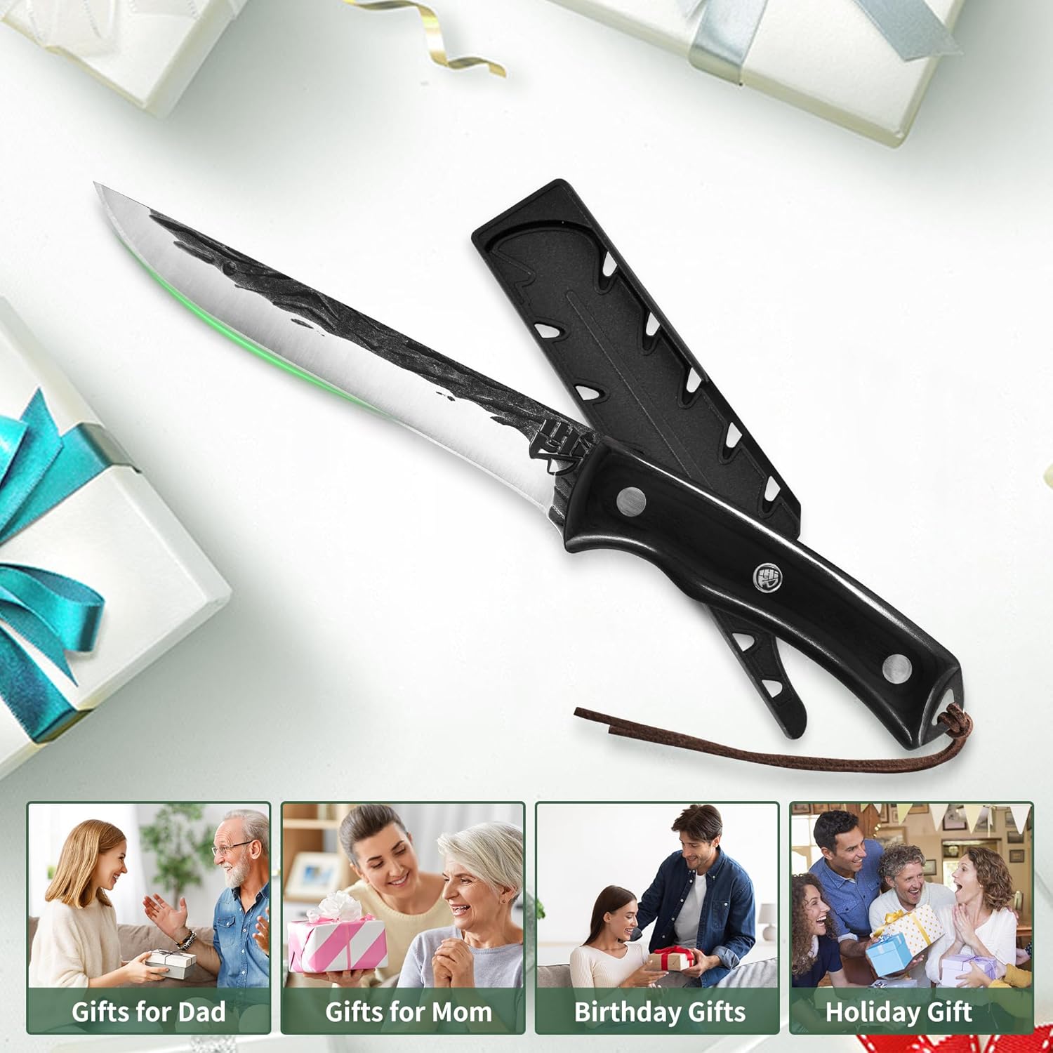 - FULLHI Ausbeinmesser, Multi-Farben Griff Full Tang Küchenmesser, High Carbon Steel Carving Fishing Deboning Messer für Outdoor Camping BBQ, Weihnachtsgeschenke für Frauen Männer