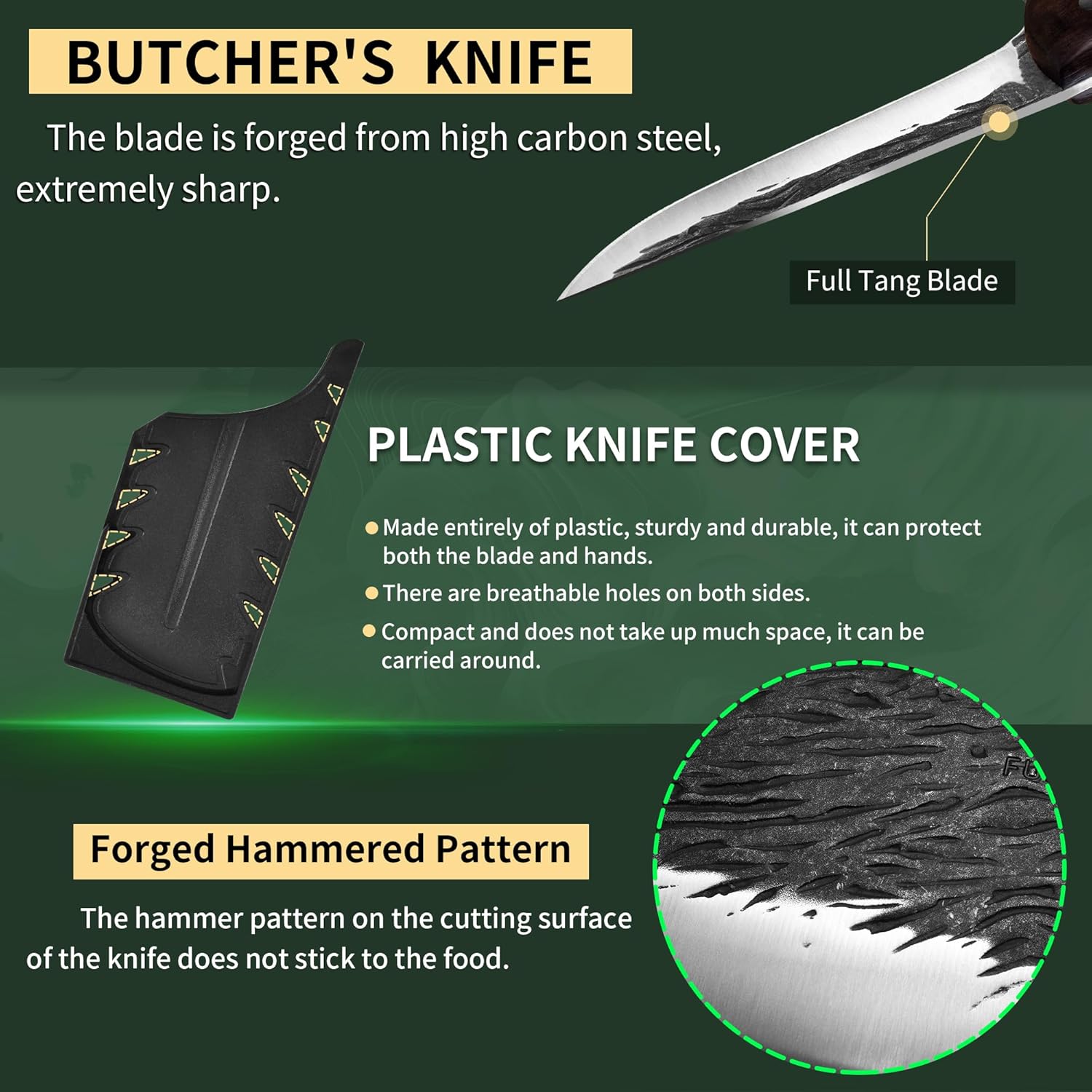 • FULLHI Ausbeinmesser, Multi-Farben Griff Full Tang Küchenmesser, High Carbon Steel Carving Fishing Deboning Messer für Outdoor Camping BBQ, Weihnachtsgeschenke für Frauen Männer