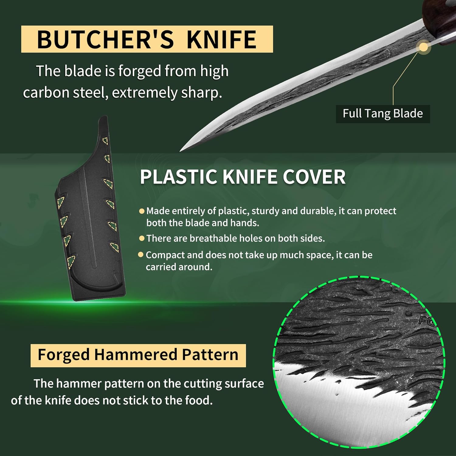 - FULLHI Ausbeinmesser, Multi-Farben Griff Full Tang Küchenmesser, High Carbon Steel Carving Fishing Deboning Messer für Outdoor Camping BBQ, Weihnachtsgeschenke für Frauen Männer