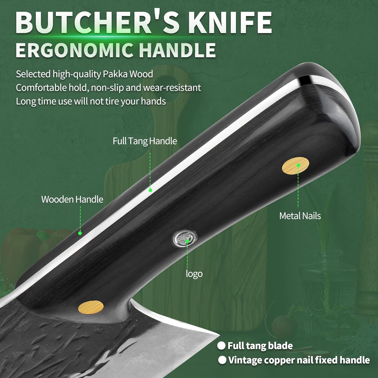 - FULLHI 2 Stück Multi-color Holzgriff Full Tang Heavy Meat Cleaver mit Scheide, High Carbon Steel Chef Fleisch Schneiden Küchenmesser für Outdoor-Kochen, Camping BBQ