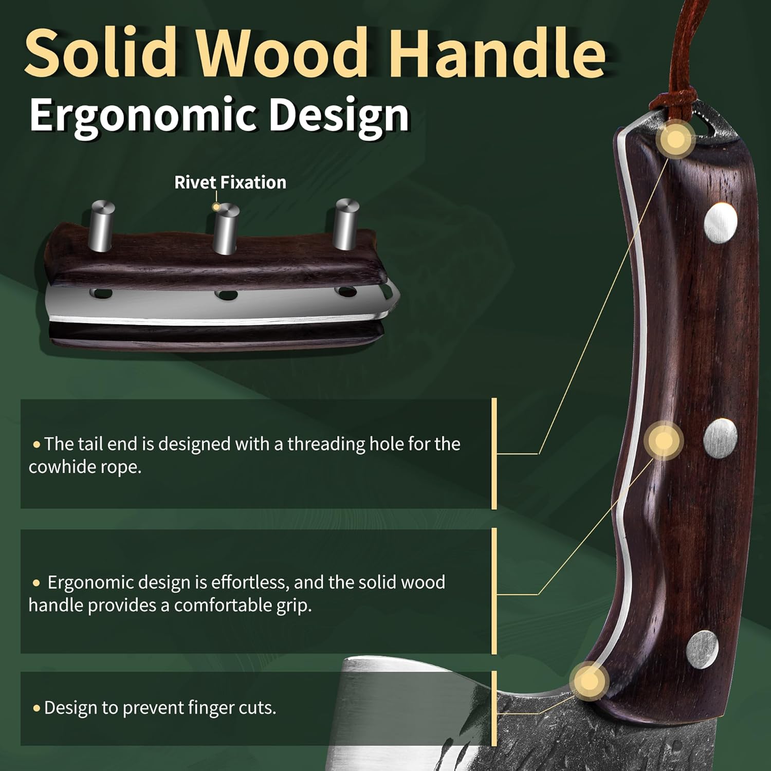 • Ergonomischer Vollgewindegriff, bequem zu halten das Messer mit Anti-Rutsch-Effekt. Küchenhacker ist eine helle Landschaft, tadellose Leistung dieser leistungsstarken Design mit guter Stärke und Haltbarkeit.