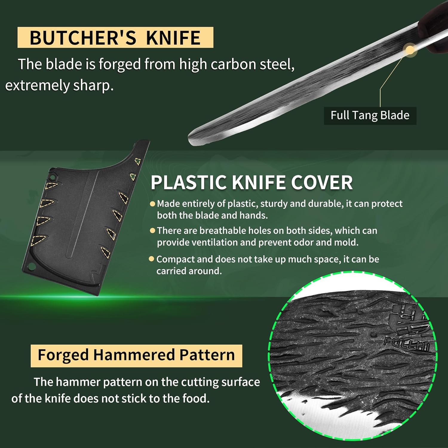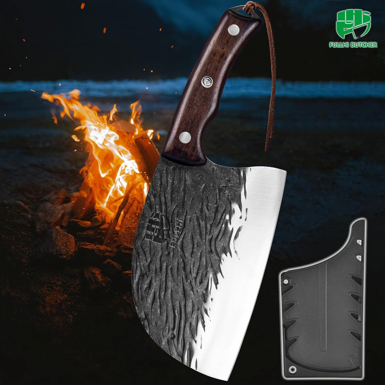 FULLHI Voll-Tang Metzgermesser mit Scheide, serbisches Kochmesser mit hohem Kohlenstoffstahl Fleisch