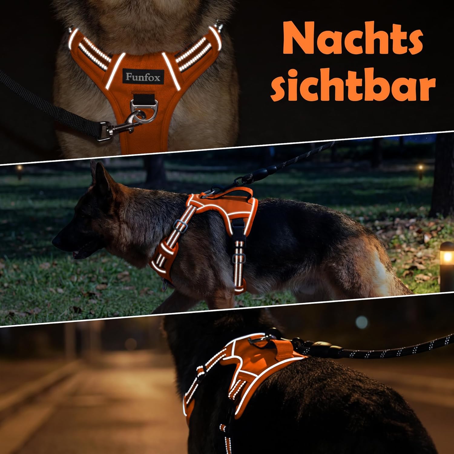 - NACHTREFLEXION SCHUTZ: Mit der Reflexstreifens des Brustgeschirrs bieten gute Sichtbarkeit bei dunklen Bedingungen. Der Verlust eines Hundes in der Nacht bringt dem Besitzer viele Sorgen. Die auffällige Weste kann hunde auch leicht zum Suchziel machen.