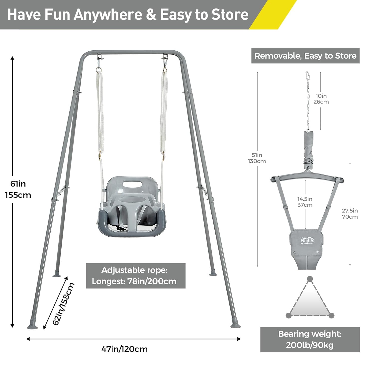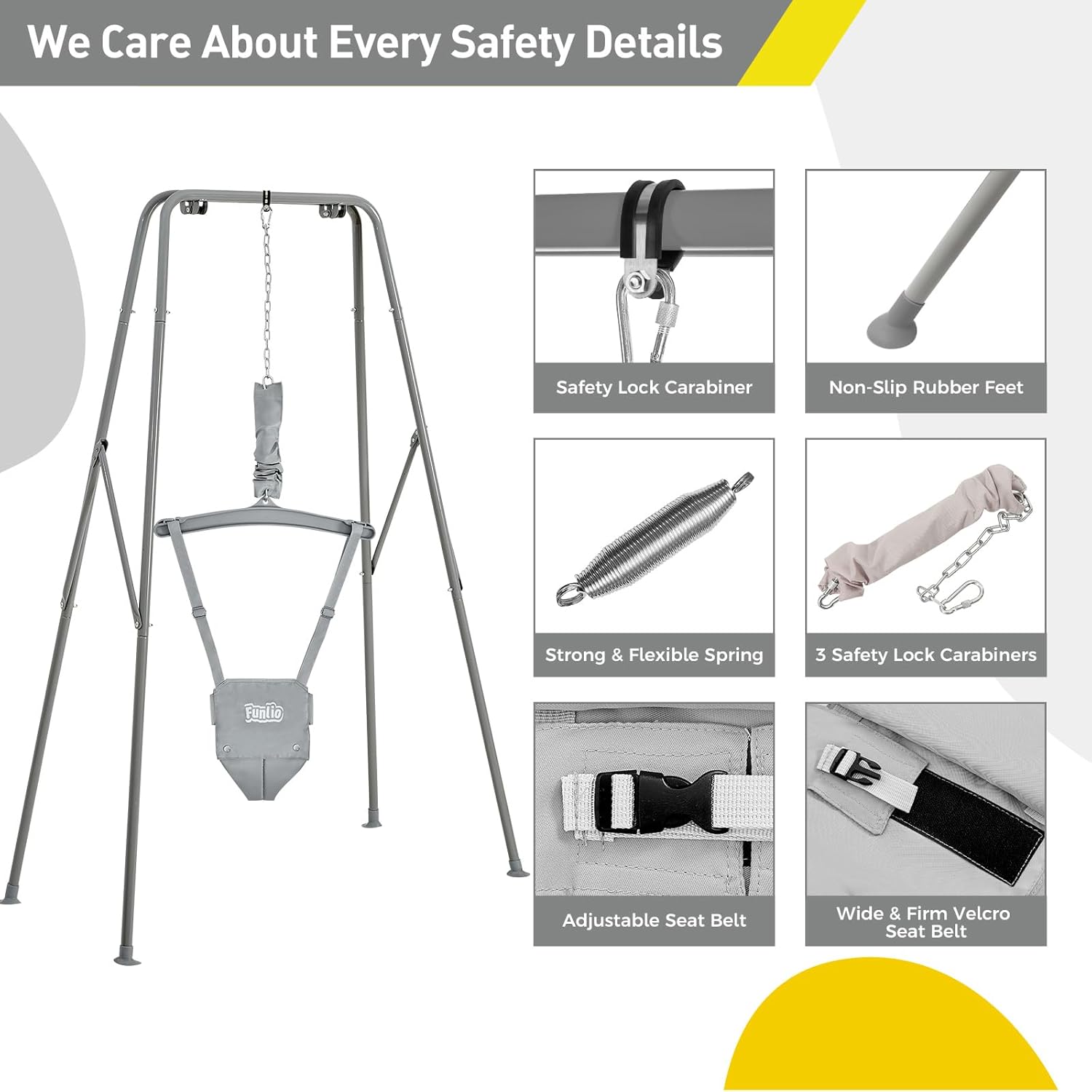 - 【Zertifiziert von CPSC, ASTM & EN 71】FUNLIO-Schaukelset und Baby Türhopser haben CPSC und ASTM in den USA und die europäische Norm EN 71 in der EU bestanden. Der Ständer besteht aus robustem, ausziehbarem Stahl und einem wissenschaftlichen