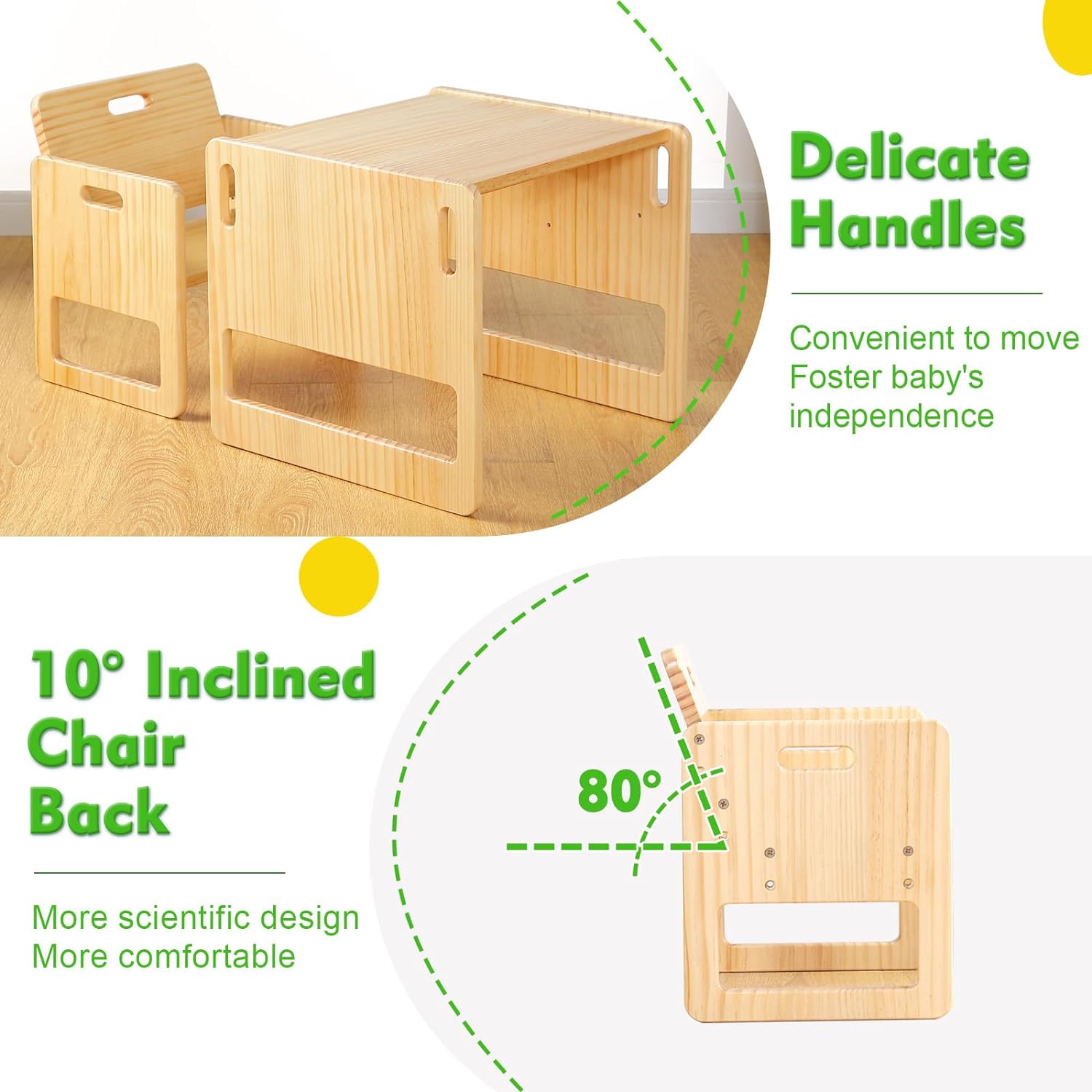 • 【FUNLIO Montessori Tisch & Stuhl Set für Kleinkinder (1-3 Jahre)】Hochwertiges Kiefernholz und Handwerkskunst. Ideal zum Entdecken und selbstbewussten Gestalten. Perfekte Umgebung zum Lernen, Lesen, Essen und Spielen.