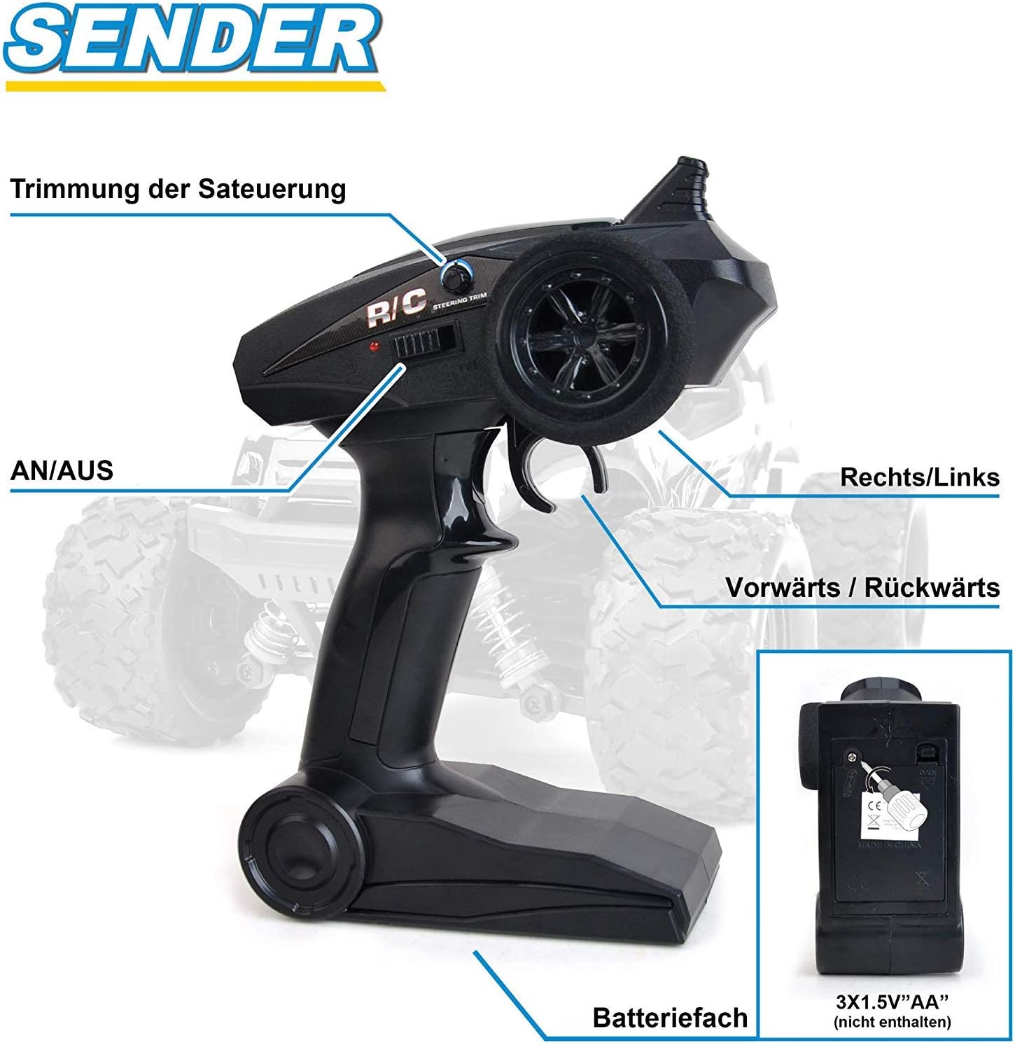 • ABMESSUNGEN VOM BUGGY Der ferngesteuerte Buggy im Massstab 1:18 ist ca. 29 cm lang und wiegt ca. 800 Gramm. Das RC Car ist für Kinder ab 14 Jahren geeignet.